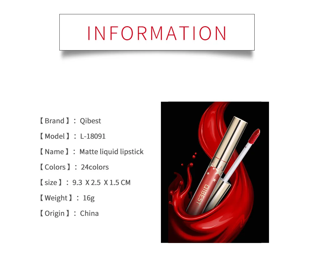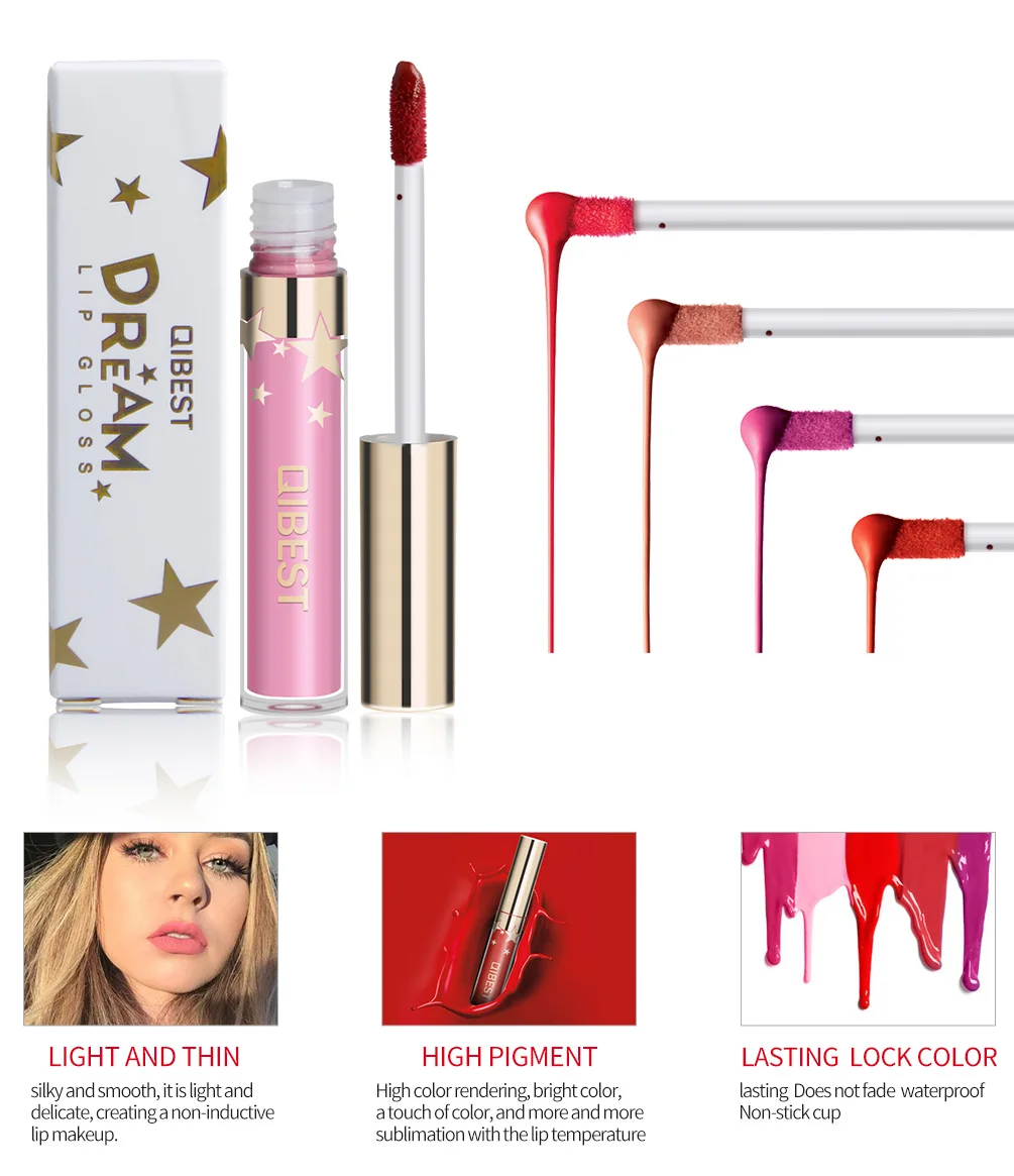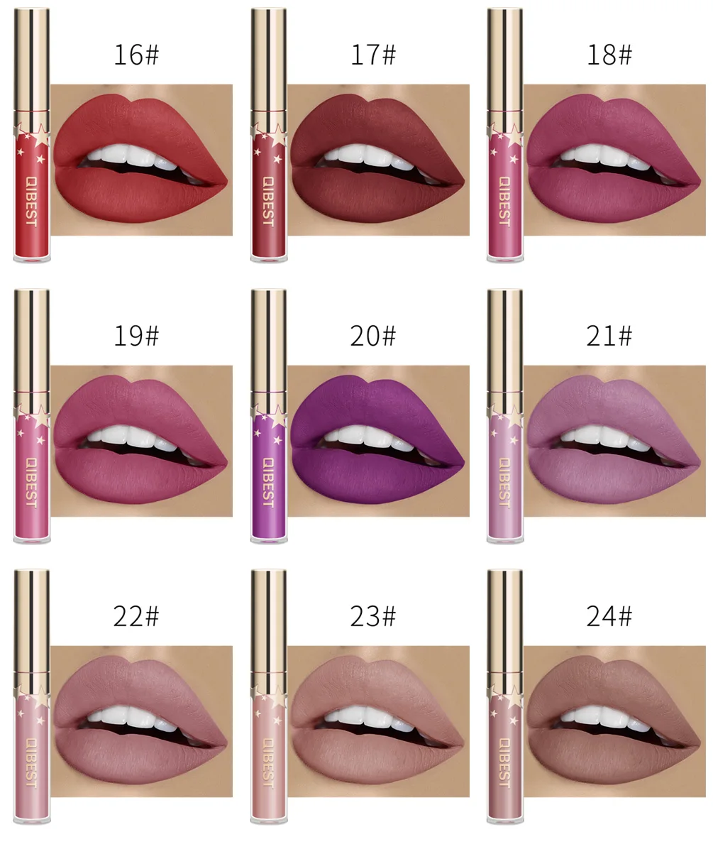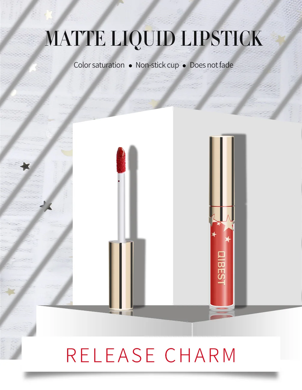 Матовая жидкая помада Qibest, портативный карманный макияж, блеск для губ с высоким пигментом, Водостойкий тинт для губ, стойкий сексуальный блеск для губ