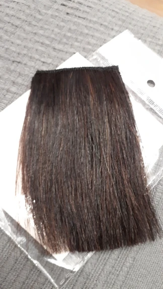 Заказ дошёл быстро13 дней, доставка Meestexpress. Заказываю не первый раз. Волосы по цвету черно - коричневые. Их реально мало. Выгоднее брать набор пучков разной ширины.В подарок продавец положил заколку и повязку для волос.