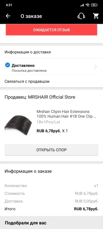 Приходит только кусок волос, когда в описании кажется, что он ставит два и очень конечно