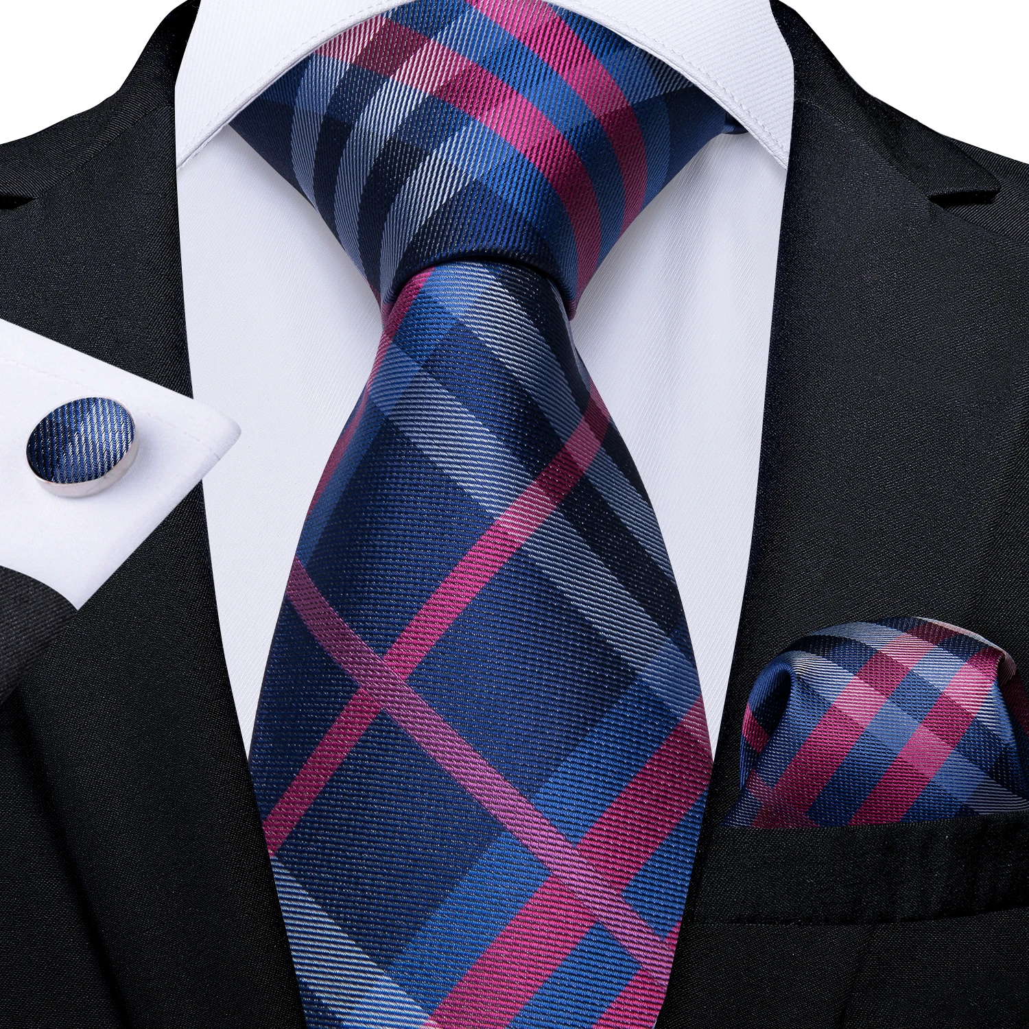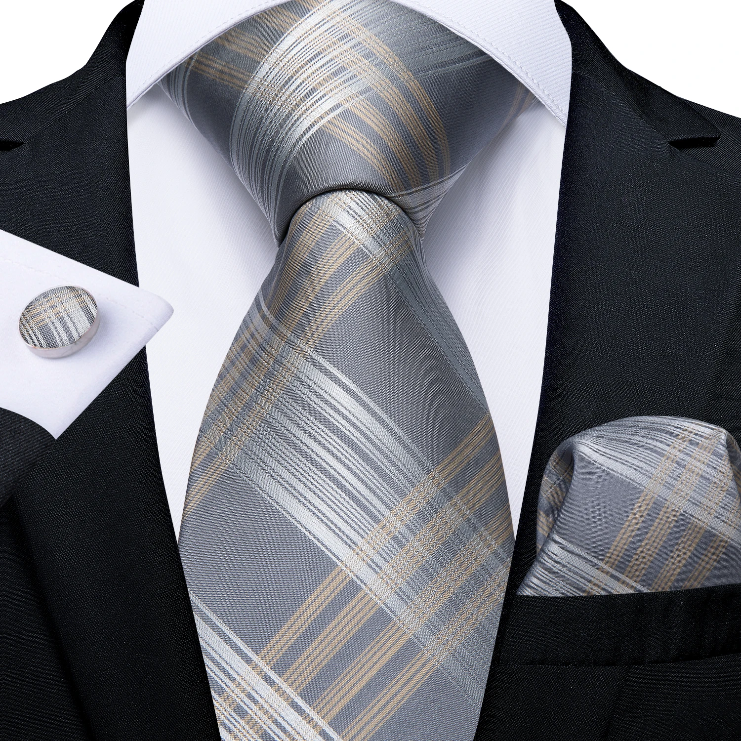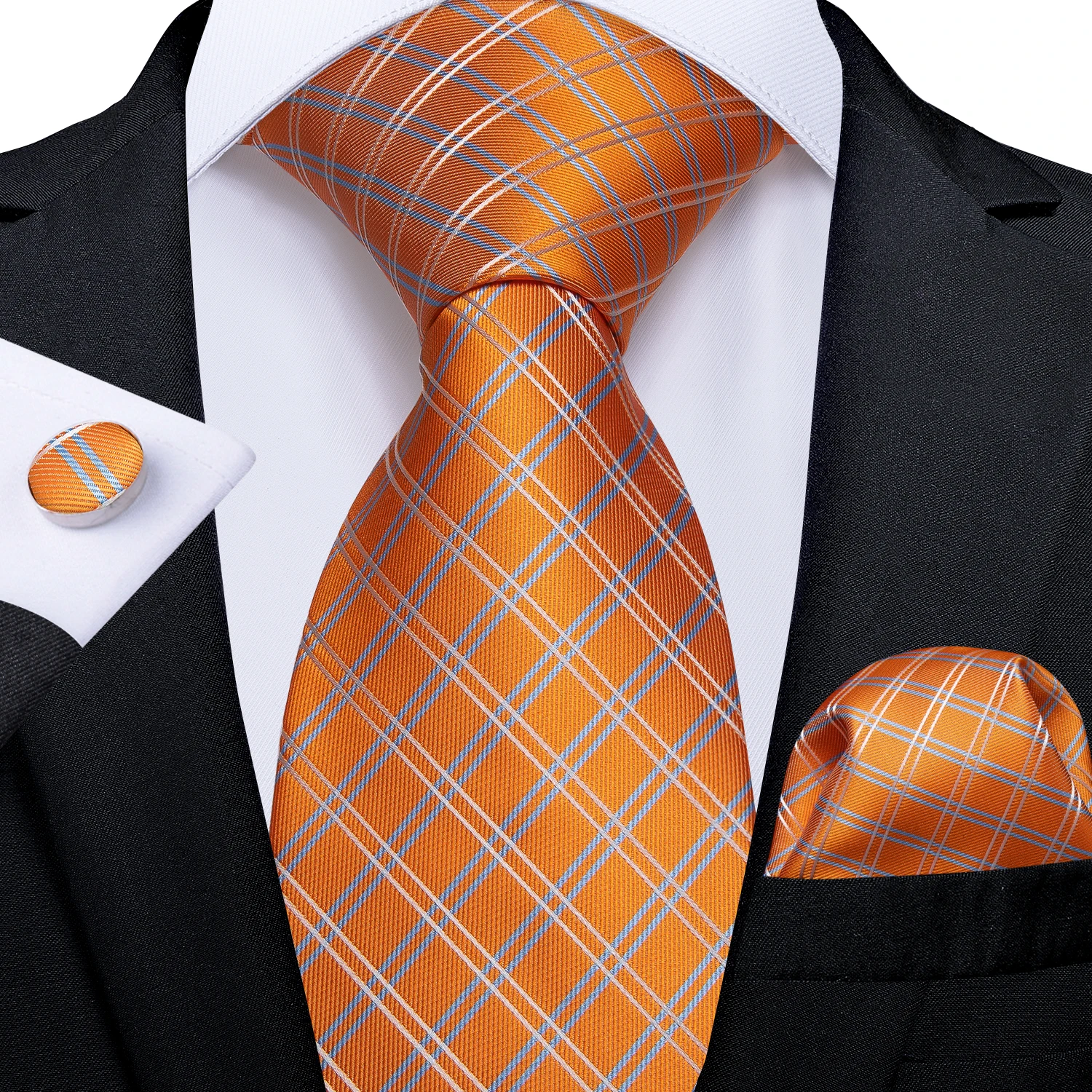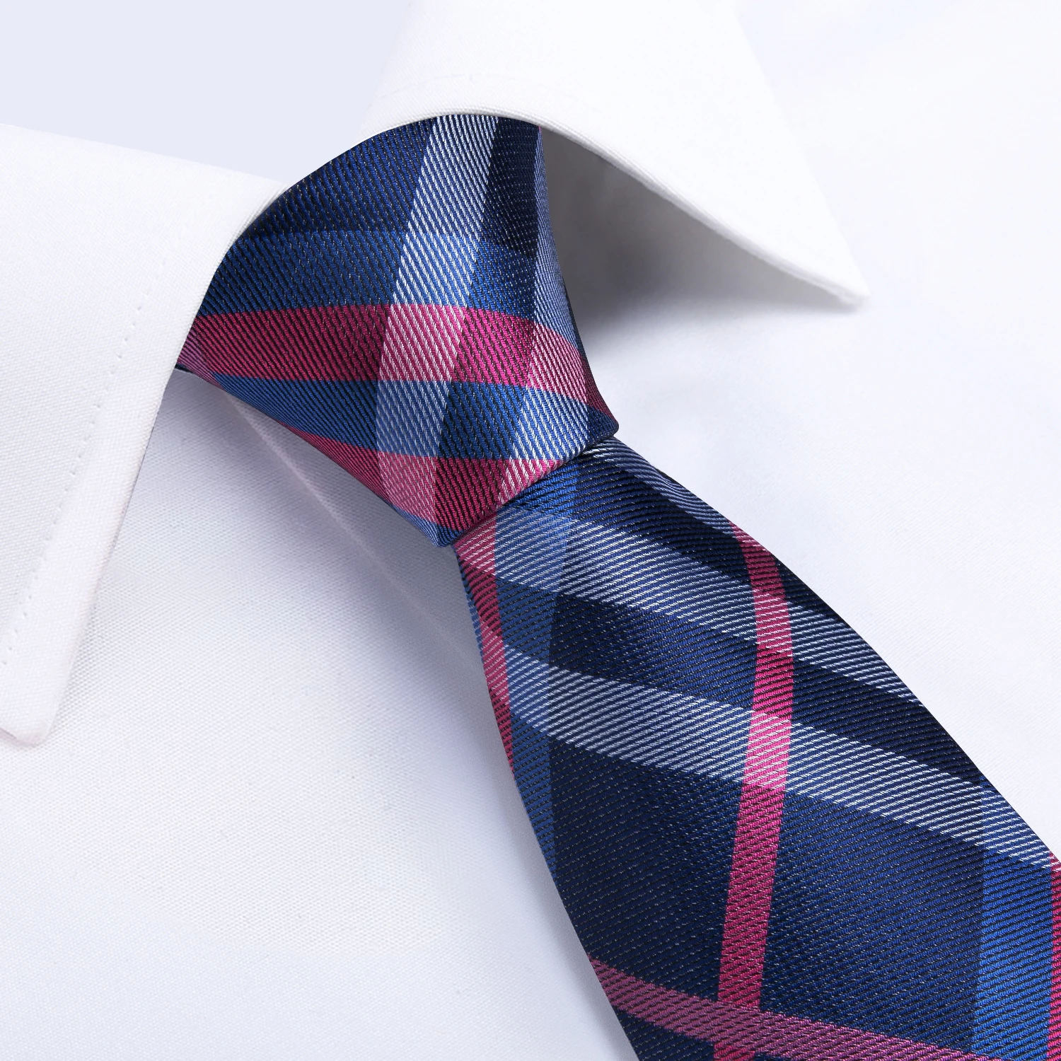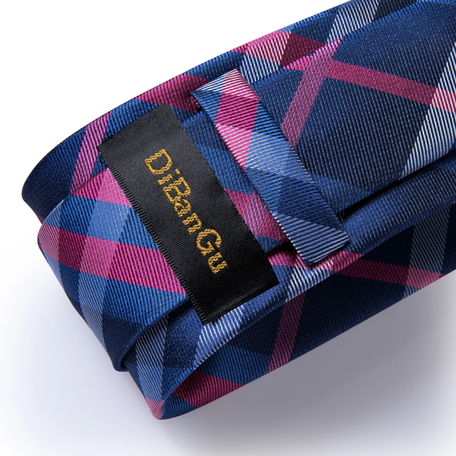 Мужской галстук в шотландскую клетку, желтый, фиолетовый, синий галстук из 100% шелка, 8 см, деловой Свадебный галстук, носовой платок, запонки, подарок для мужчин, DiBanGu