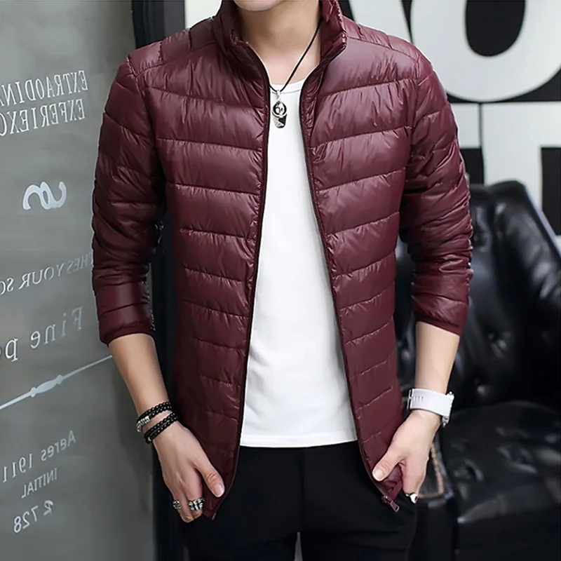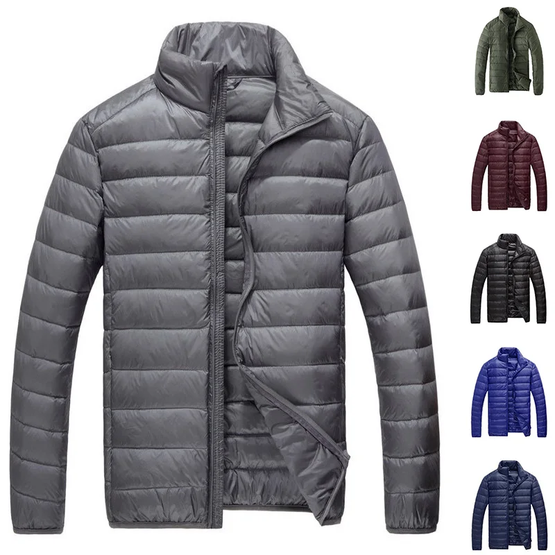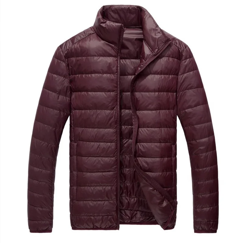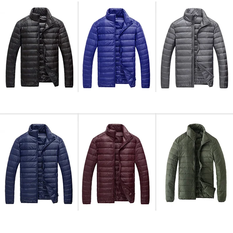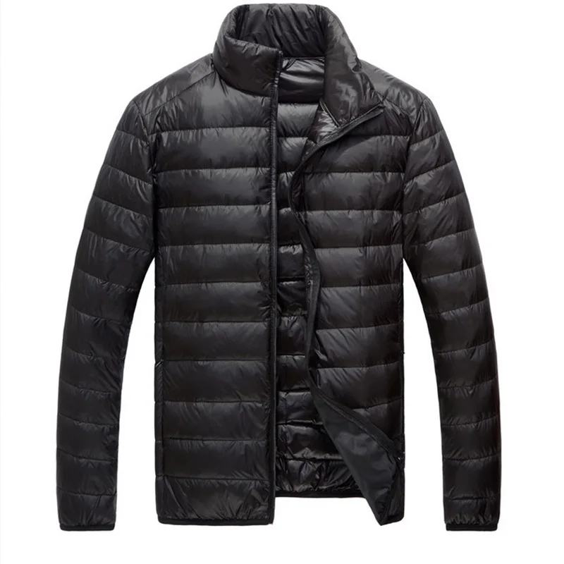 Зимняя легкая мужская пуховая куртка, искусственный утиный пух, однотонная ветрозащитная пуховая куртка с воротником-стойкой