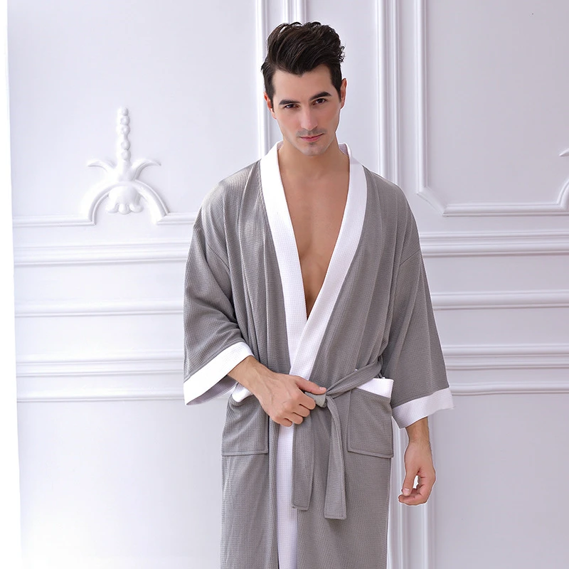 Мужские халаты для сна на весну-лето, хлопковые вафельные халаты, серый теплый мягкий халат, Размеры M, XL, XXL