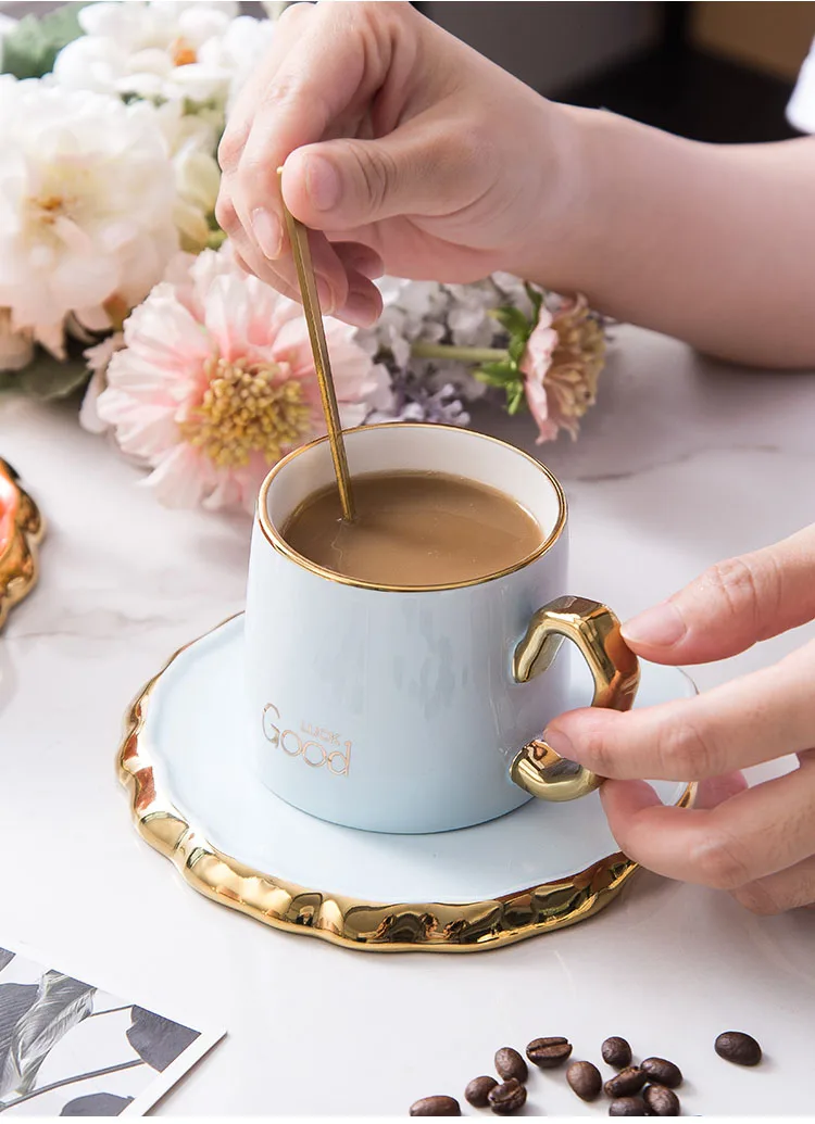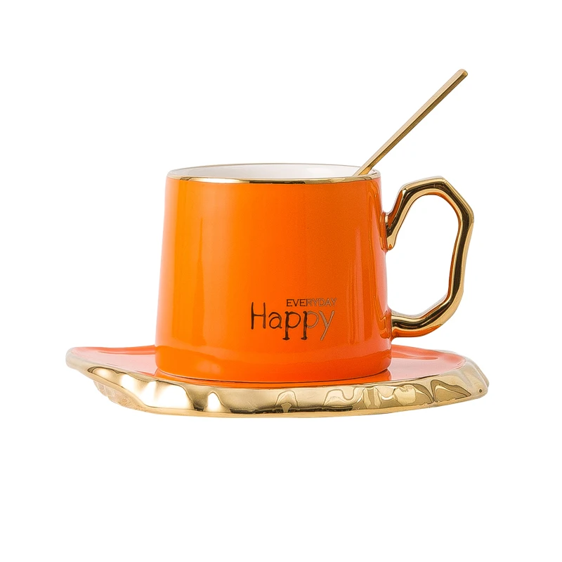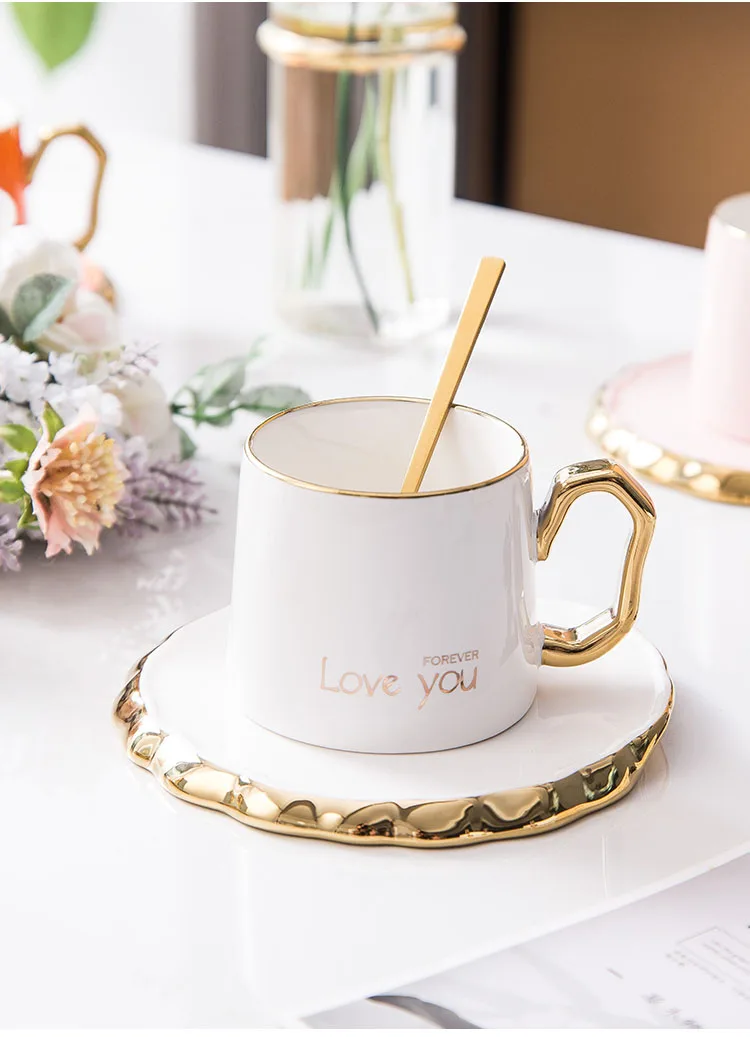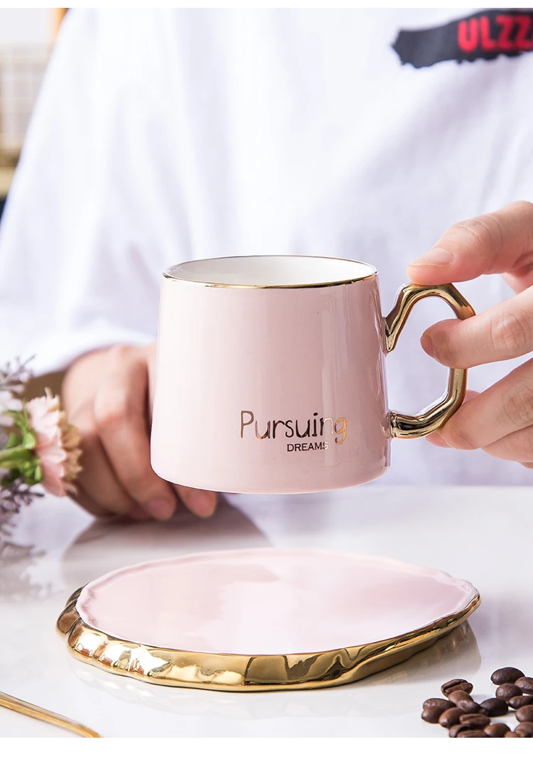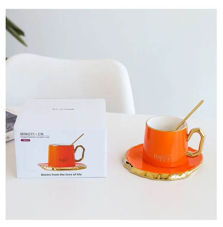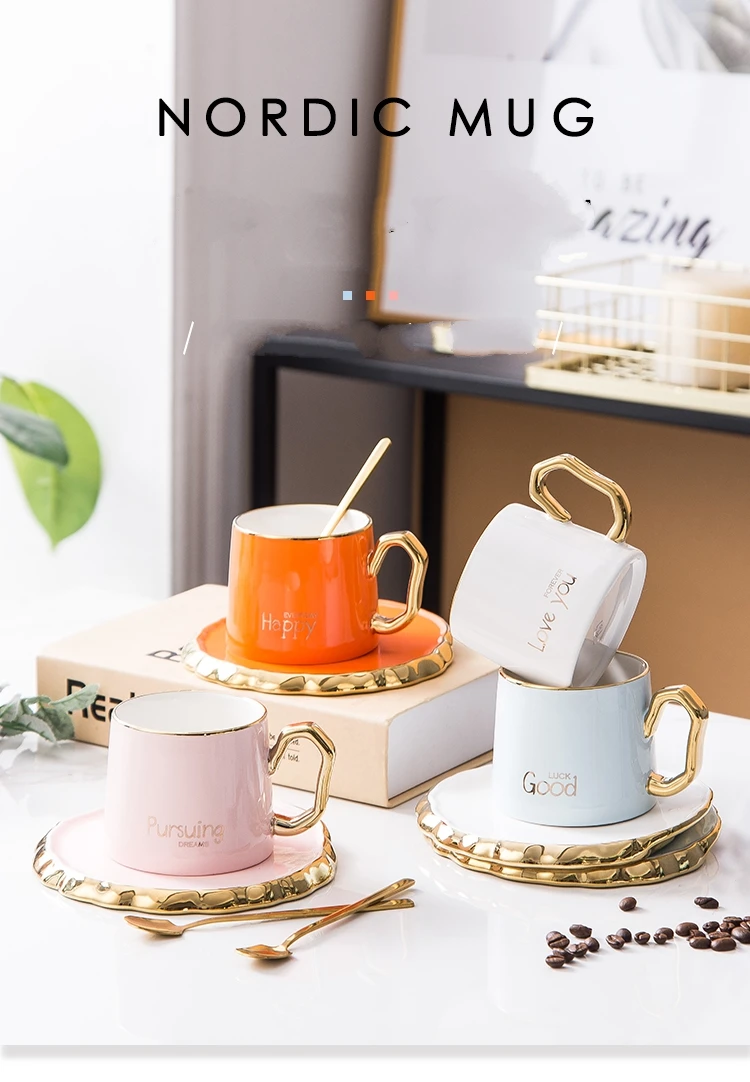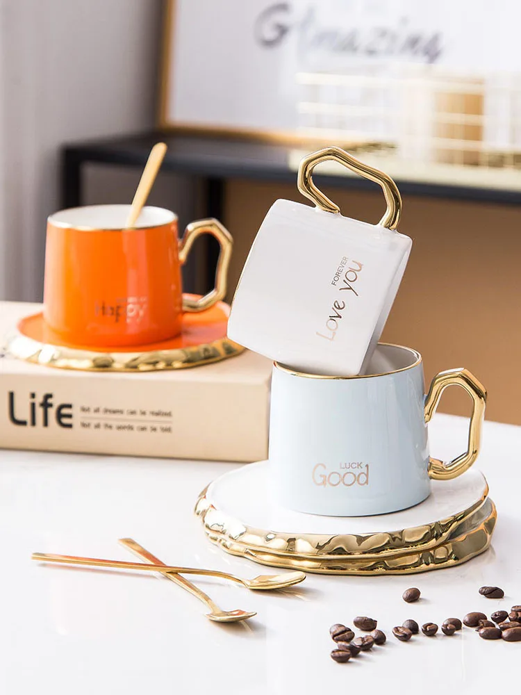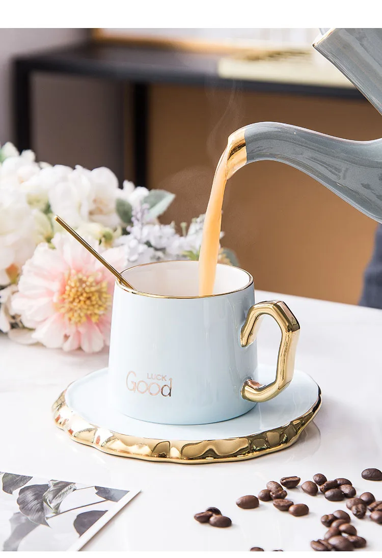Роскошная кофейная чашка с блюдцем, с золотой ручкой И кофейным ложечком, керамическая кружка, чашка для послеобеденного чая в подарок, 180 мл