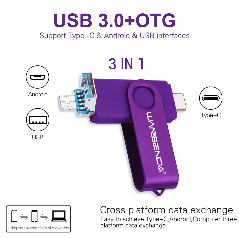 4. Дизайн 3-в-1 с Тип C порт, микро usb порт и USB 3,0 разъем, легко передача данных между смартфоном и компьютерами.