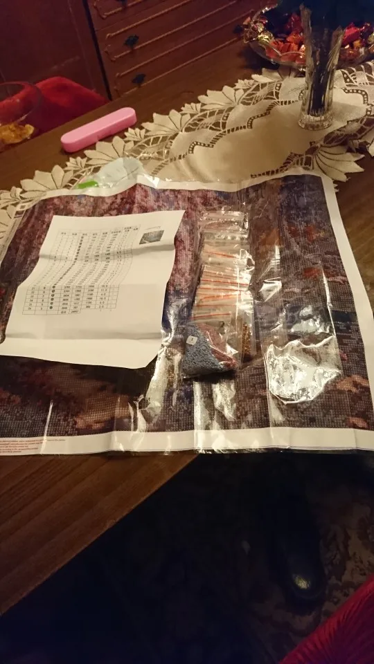 товар пришёл быстро,все целое,картина вроде хорошая,посмотрю точно когда соберем совпадает ли по цветам,не понравилось что нет насадки для нескольких страз,только одинарная, стразы заказали квадратные ,пинцет в комплекте есть