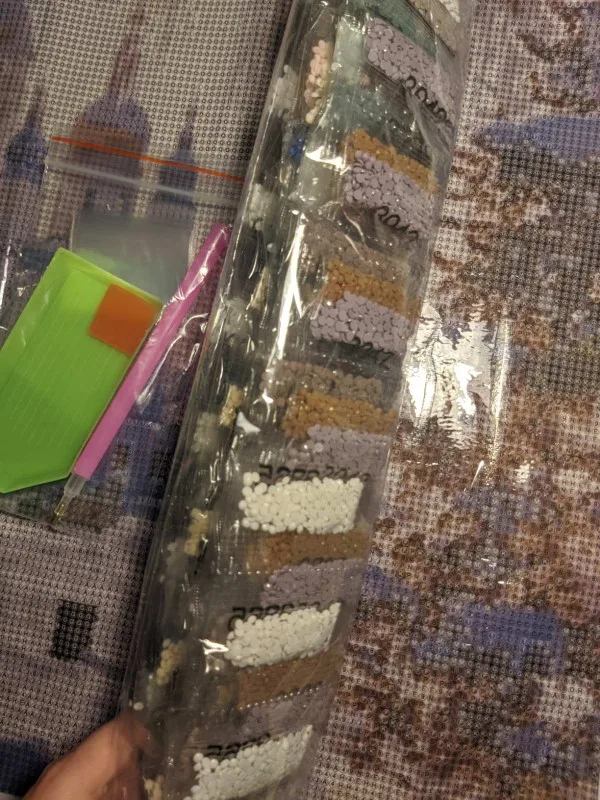 не первый раз покупаю такую мозаику на Aliexpress. Мама моя любит этим заниматься В этот раз я неприятно удивлен, что холст тоньше, чем у других картин, расходные материаллы тоже пожалели. А все остальное хорошо. Отправили быстро, доставили до Москвы за 2 недели. С продавцом не общался!