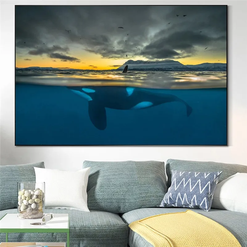 Постеры и принты китов В Полярном ночном океане, морские животные, пейзаж, Картина на холсте, домашний декор, Настенная картина