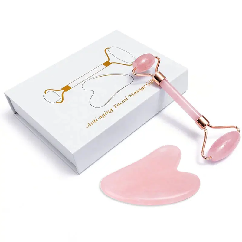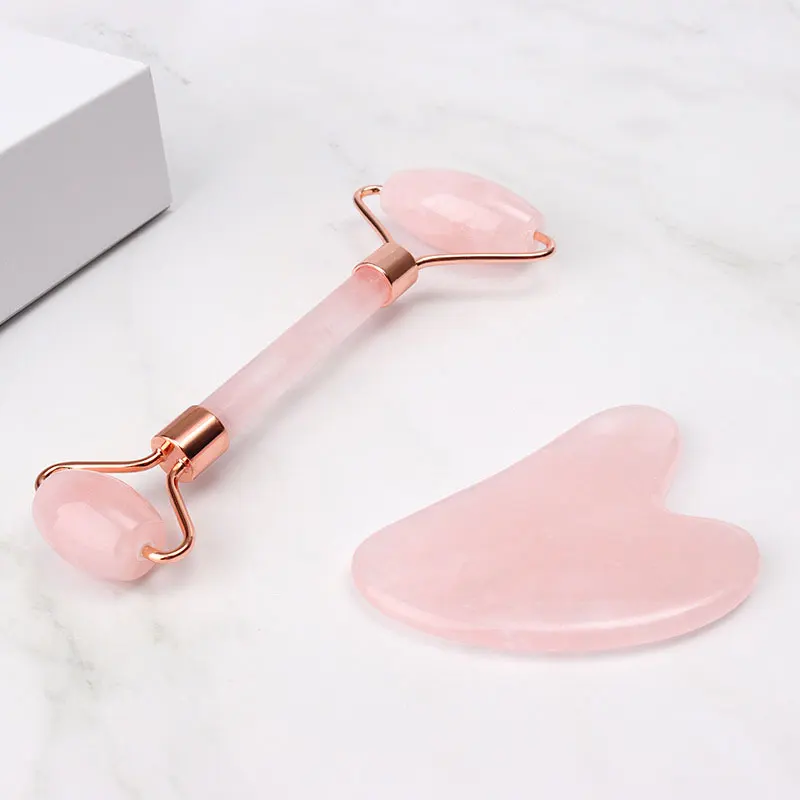 Натуральный гуашь камень нефритовый ролик-массажер гуашь скребок набор Роза кварц ролик для массажа лица гуаша скребок массажер для лица