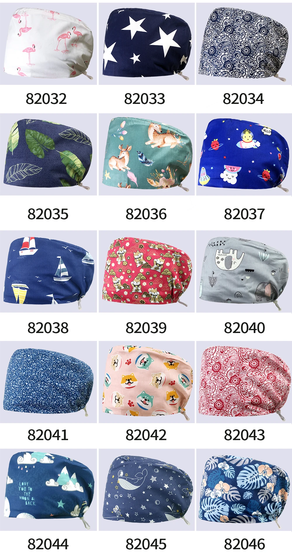 Шапка медсестринская с принтом животных, мягкая впитывающая пот пол...