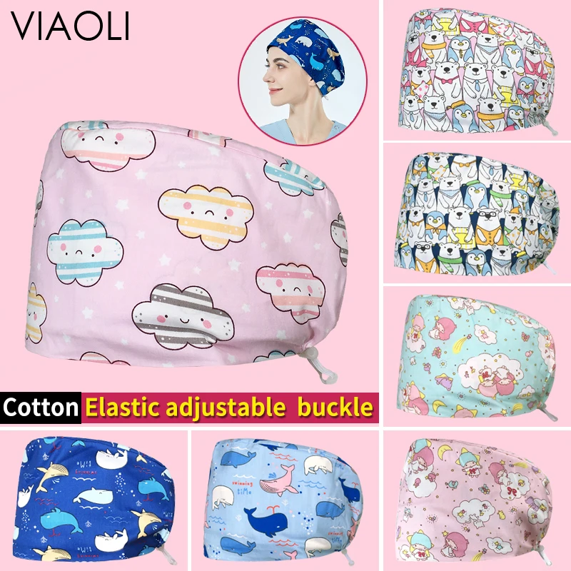Одежда для поддержания здоровья рабочие шапочки диетолог из чистого дышащего хлопка шапки мультфильм животных красоты скраб шапки чистки лаборатории пылезащитных колпачков