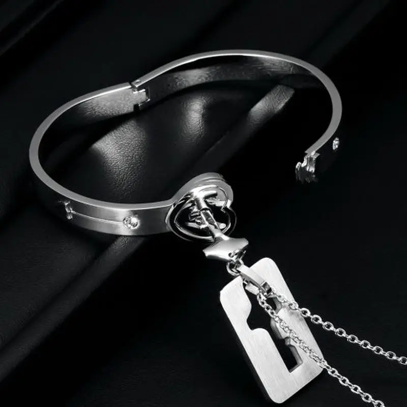 Данный комплект имеет колье в форме ключа и браслет в форме замка.Это очень романтично для пар.