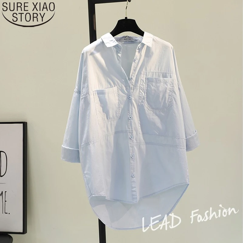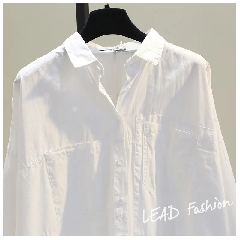 Блузка женская хлопковая, с длинным рукавом, винтажная, в Корейском стиле, размера плюс
