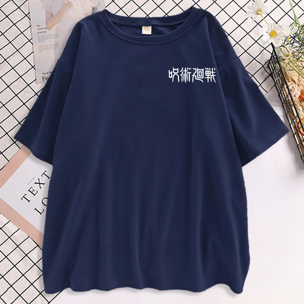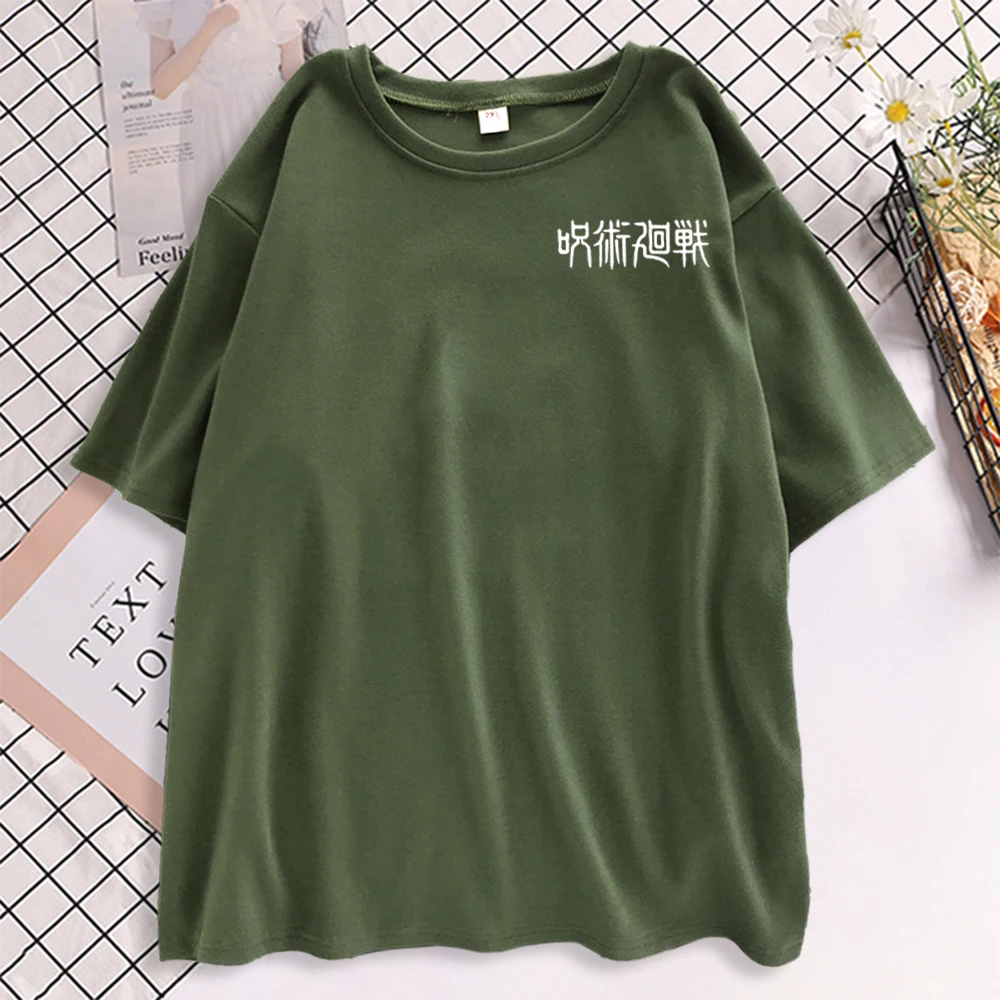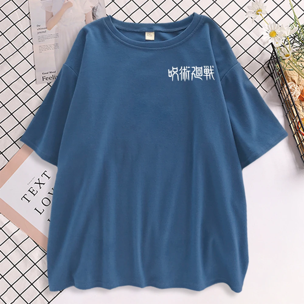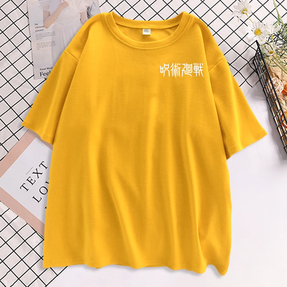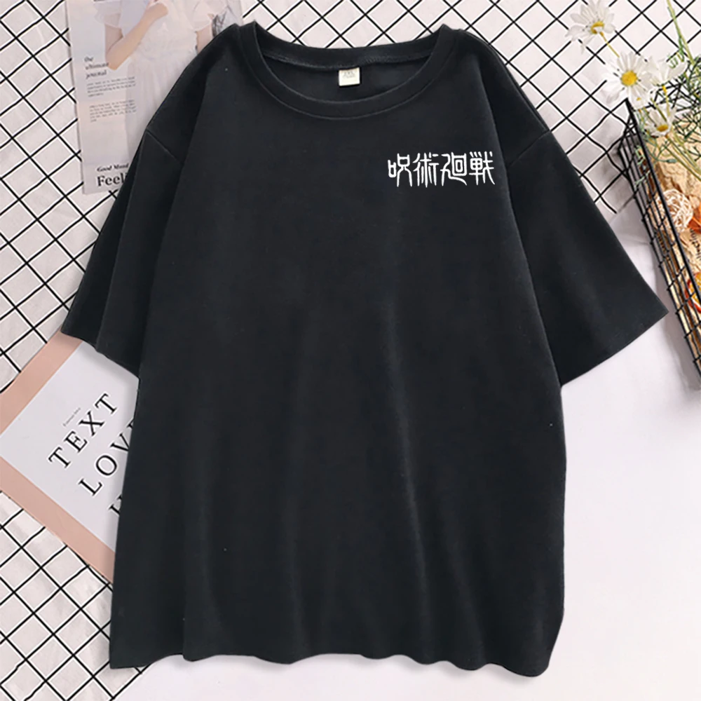 Футболка женская с японским буквенным принтом, модная тенниска с капюшоном, повседневная майка в стиле хип-хоп, хлопковый топ, юютсу кайсен, на лето