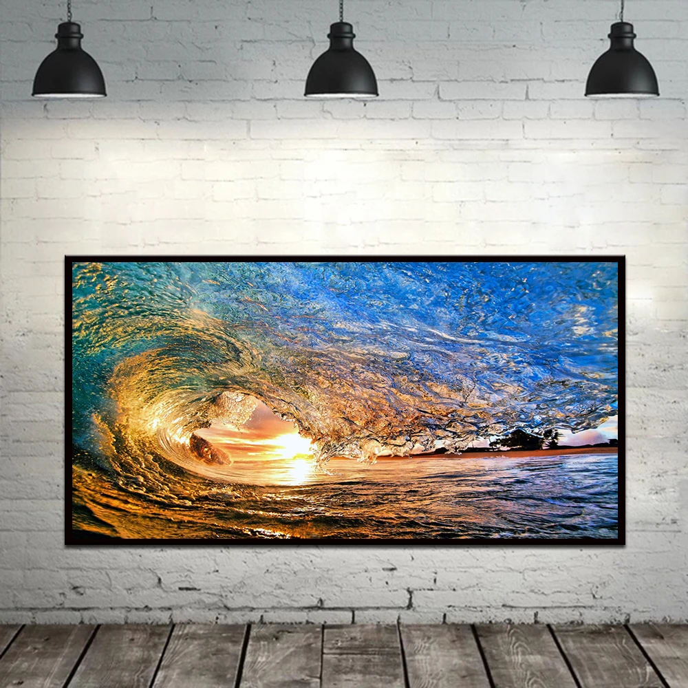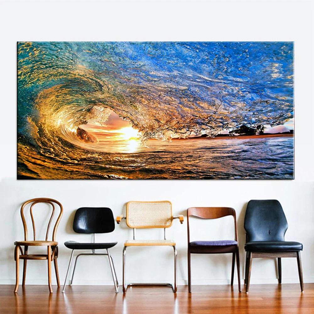 Современное настенное искусство, морская волна, пляж, закат, декора...