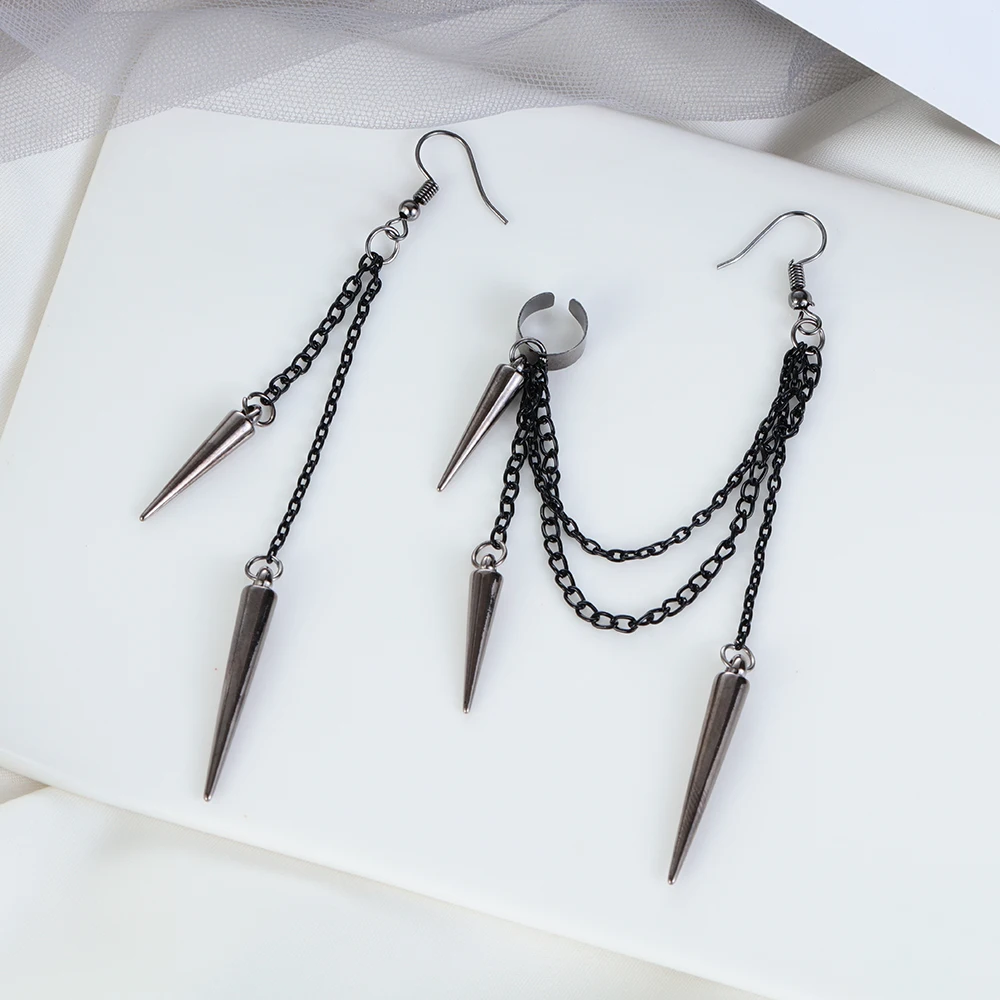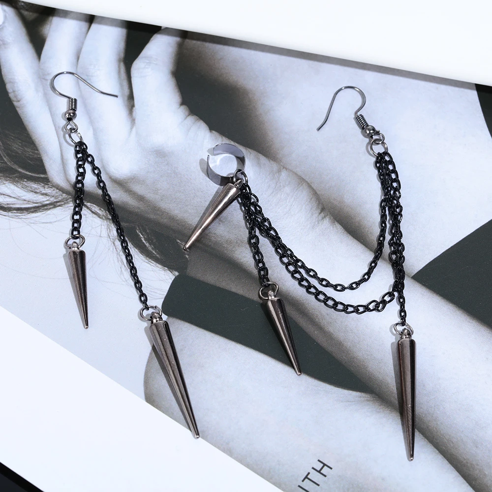 Серьги-гвоздики в стиле ретро с черной кисточкой