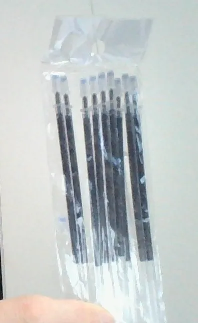 Доставка до Екатеринбурга около 3 недель. Стержни пришли в пакетике, как на фото (он закрывается, хранить удобно). Пишут хорошо. Продавца рекомендую. при необходимости буду заказывать еще.