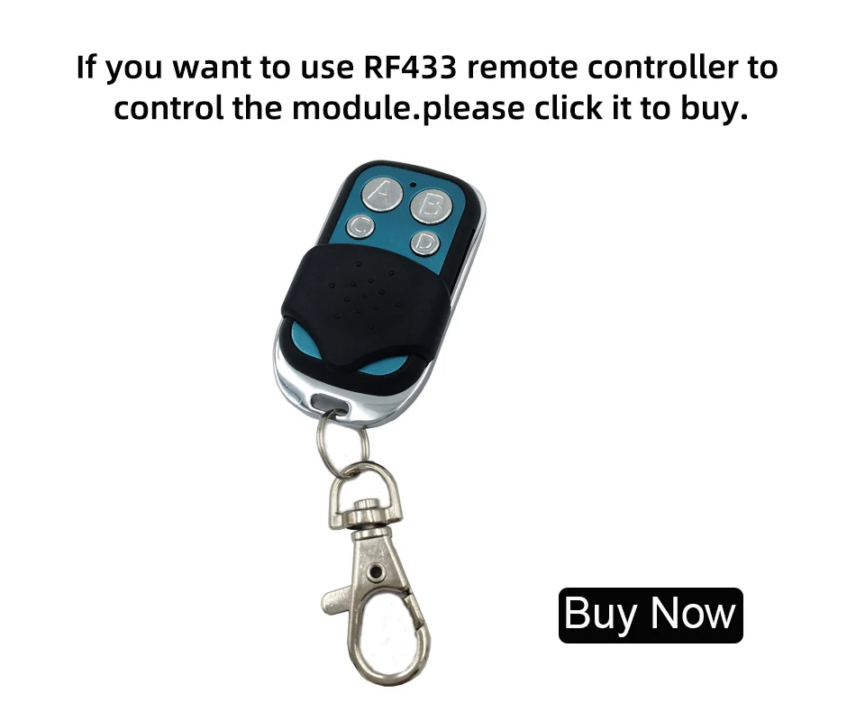 Если вы хотите использовать пульт дистанционного управления RF433 для управления модулем. Пожалуйста, нажмите его, чтобы купить.