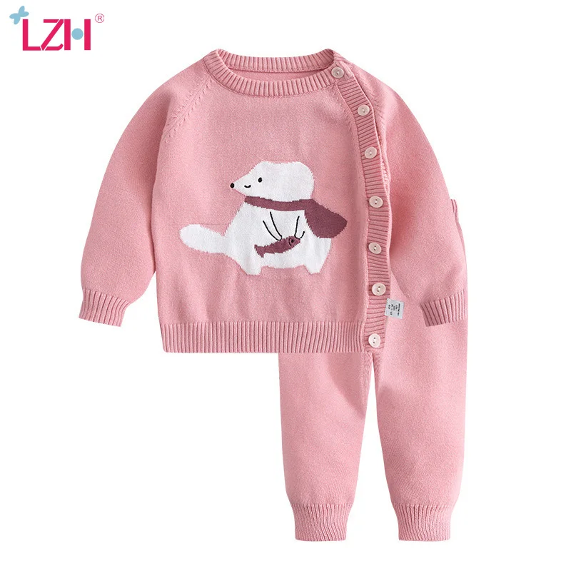 LZH 2021 модная весенняя одежда для новорожденных девочек новые хлопковые комплекты с длинным рукавом для младенцев малышей мальчиков вязаные Мультяшные Детские костюмы