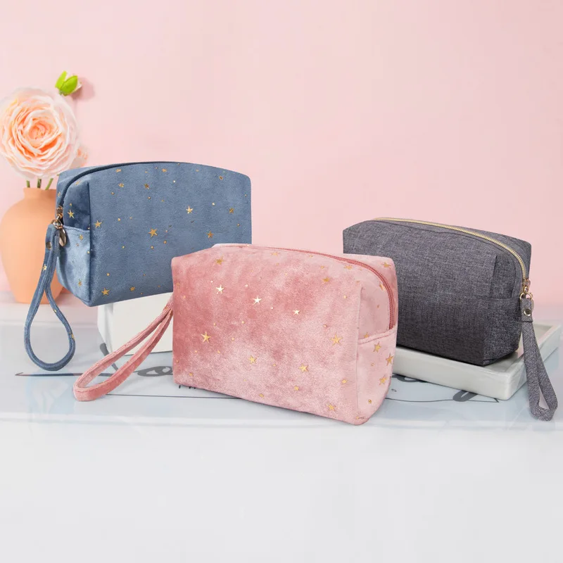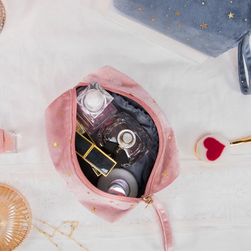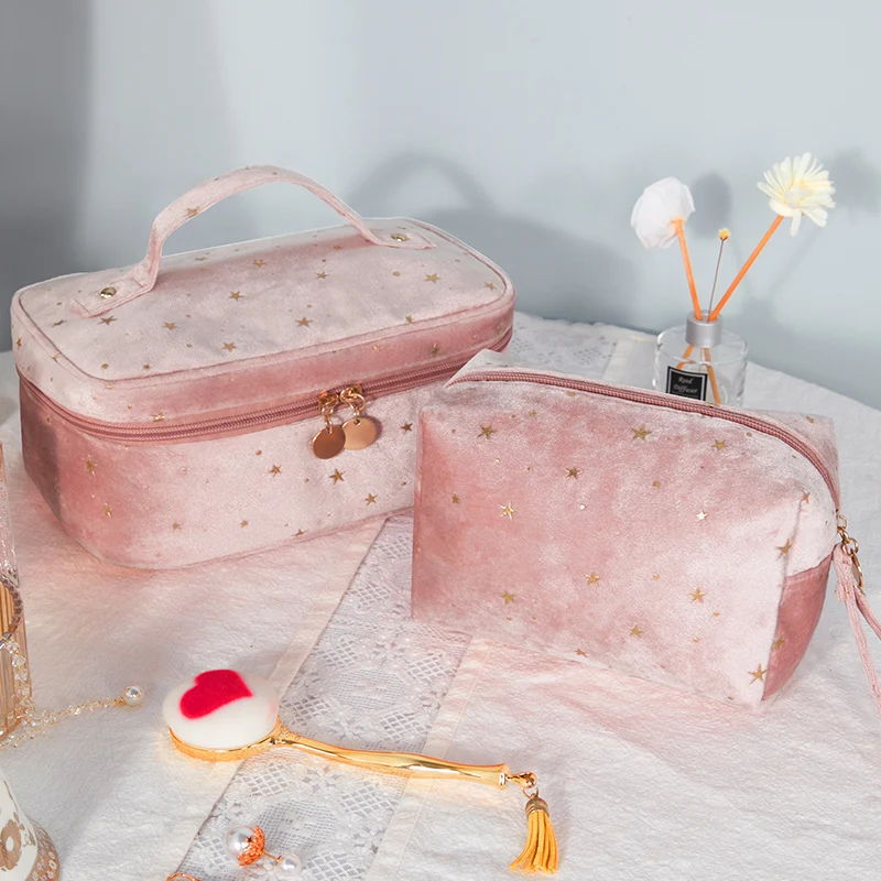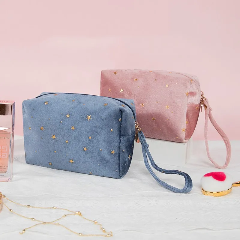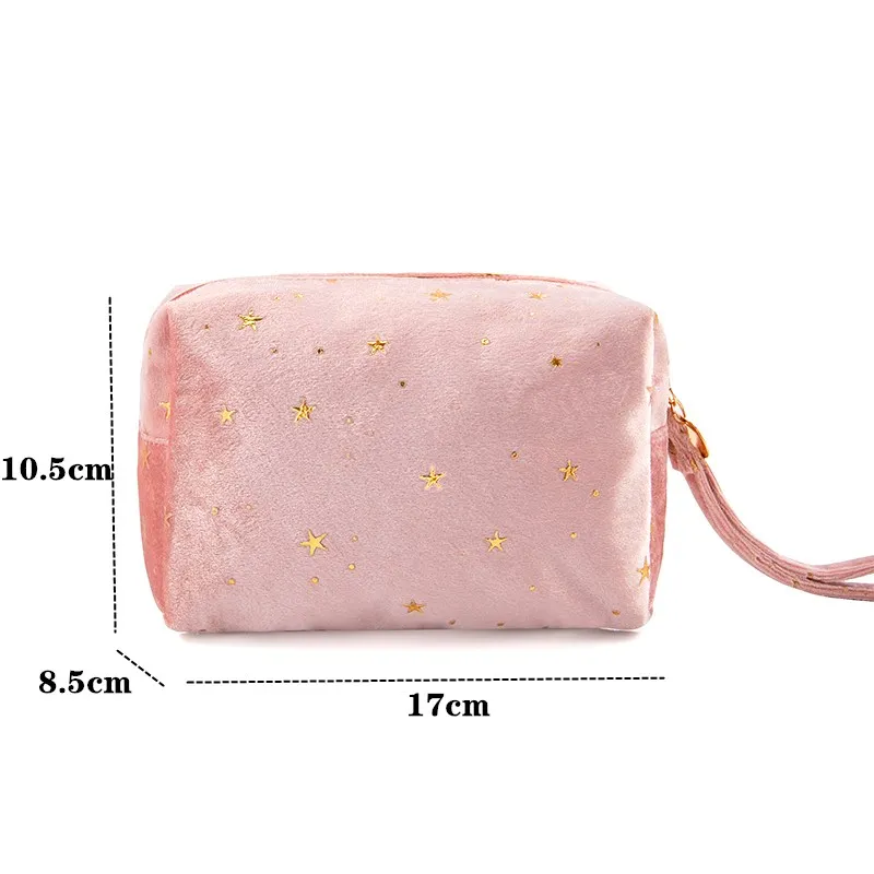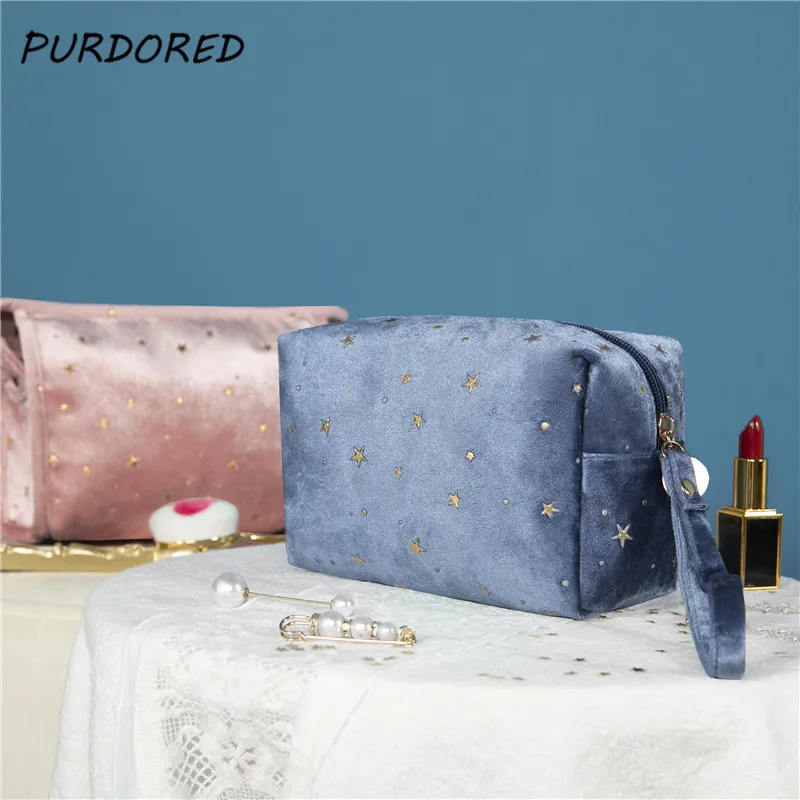 Женская бархатная косметичка PURDORED, 1 шт., однотонная Сумочка для макияжа на молнии, с золотой звездой, для путешествий, косметичка, красивый чехол