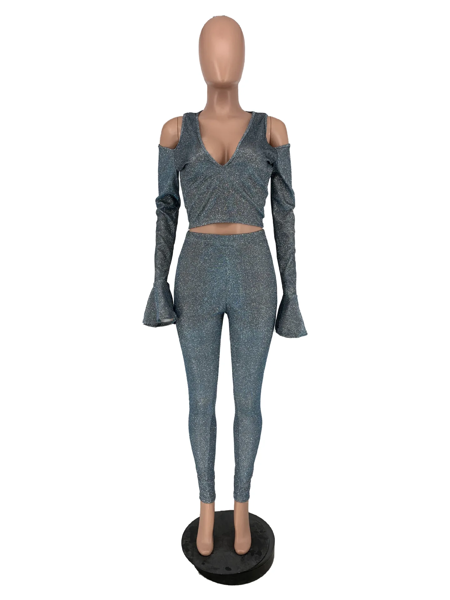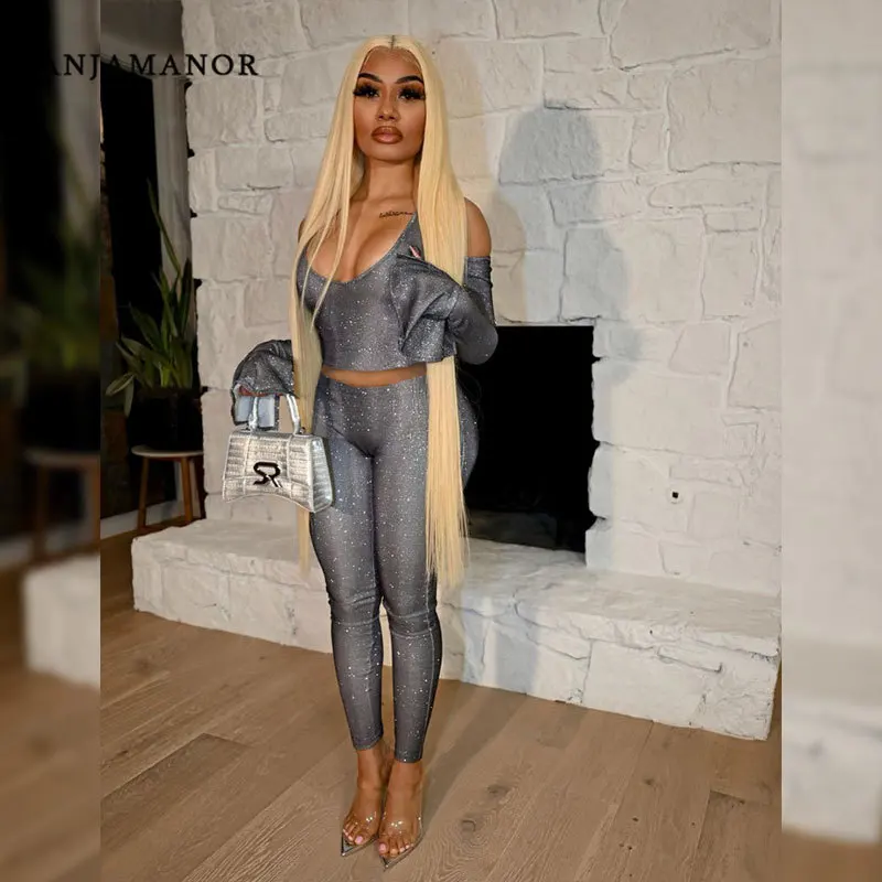 ANJAMANOR к требованиям заказчика; Сверкающие; Сексуальный топ и штаны, 2 предмета в комплекте, женские, одежда для дня рождения для детей возрастом ночного клуба, модные одинаковые комплекты D21-DA31