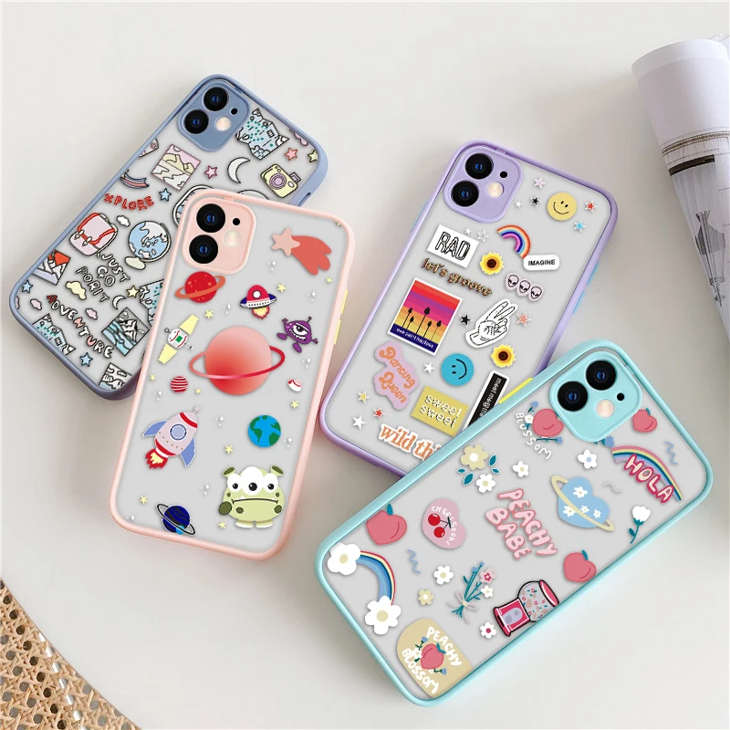 Противоударный чехол для iPhone 11 Pro Max 12 Mini 13 7 8 6 6S Plus XS MAX XR X, прозрачный чехол, бампер с цветочным космическим узором