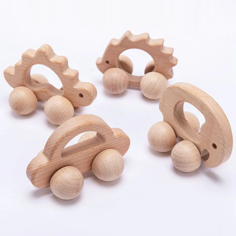 1 шт., игрушечный автомобиль из бука, блоки, мультяшный ежик, Прорезыватель зубов, Монтессори, Обучающие деревянные игрушки, подарок на день рождения для новорожденных, для От 2 до 6 лет