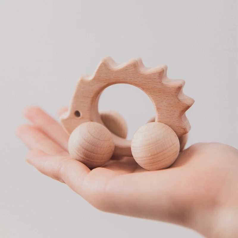 1 шт., игрушки из бука и дерева, игрушечные блоки, мультяшный ежик, Прорезыватель для зубов Монтессори, Развивающие деревянные игрушки, подарок на день рождения для новорожденных 2-6 лет