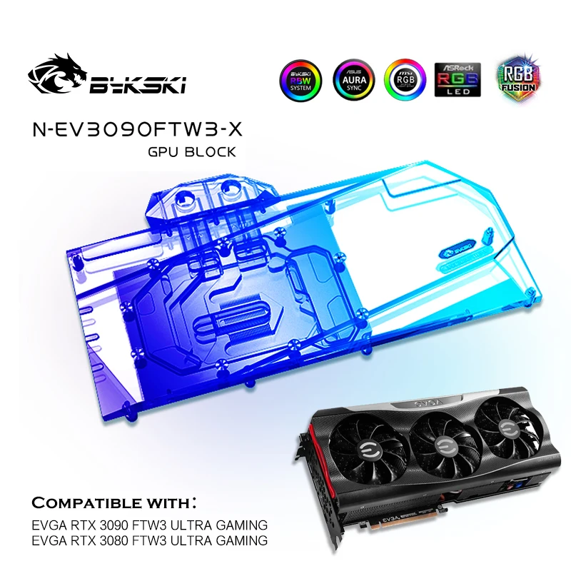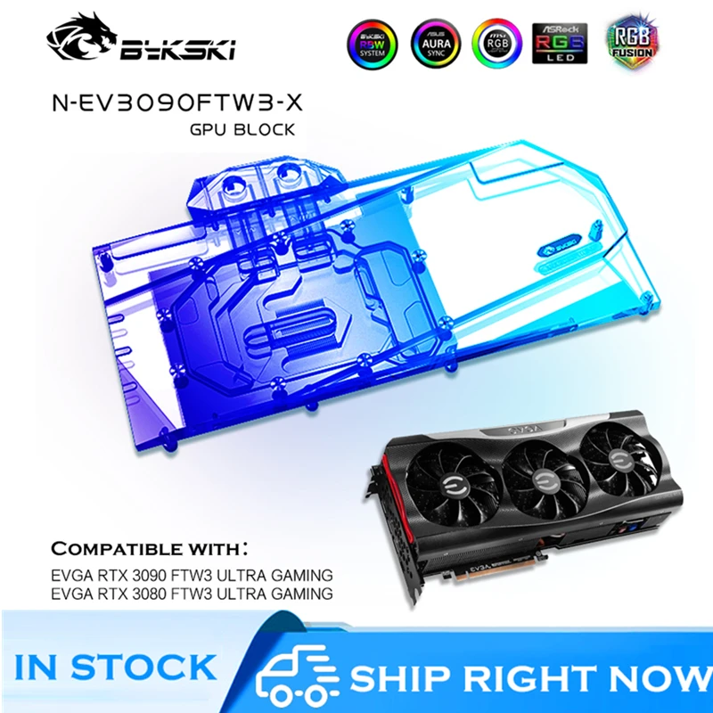 Водяной блок Bykski для графического процессора EVGA RTX 3090 3080 FTW3 ULTRA, кулер для игровых графическая карта VGA, синхронизация с MOBO RGB, N-EV3090FTW3-X