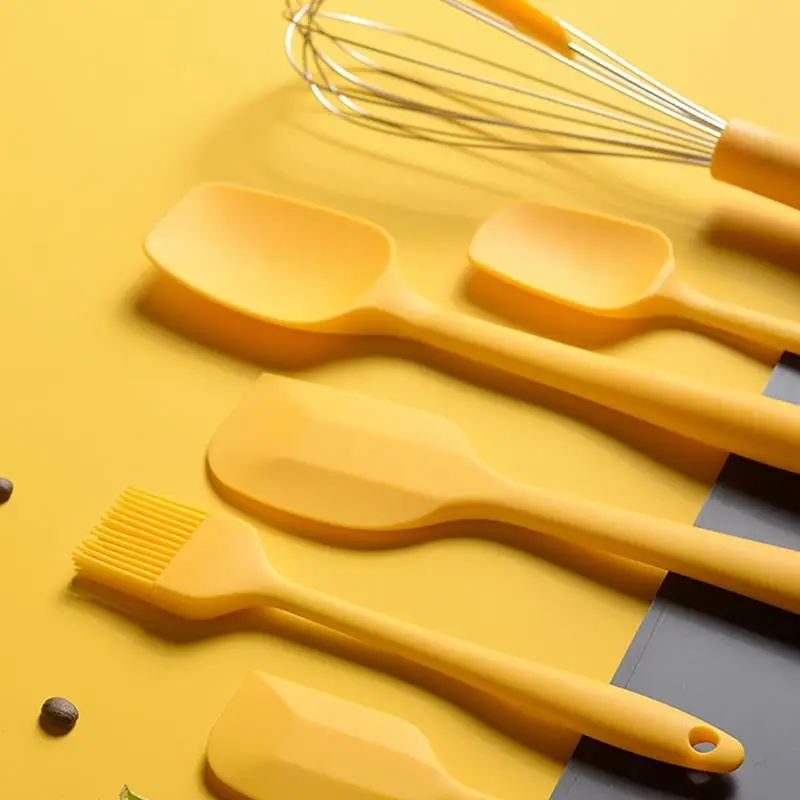 Желтая силиконовая посуда, термостойкий шпатель, масляная щетка, венчик для яиц, инструмент, пищевые щипцы, кухонная утварь, наборы кухонных принадлежностей, кухонные аксессуары