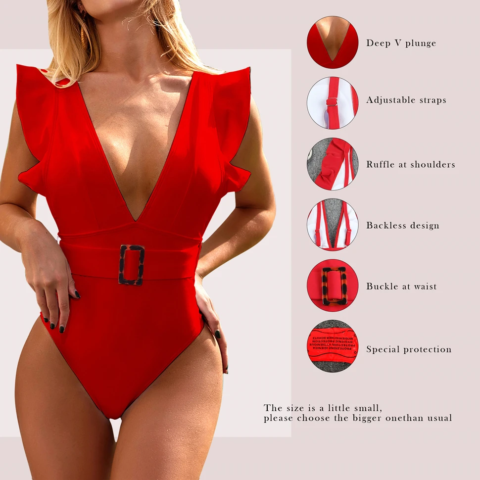 Слитный купальник TYAKKVE с V-образным вырезом, купальник с оборками, черное Монокини, пляжная одежда, боди с высоким вырезом, купальный костюм, бикини Mujer 2022