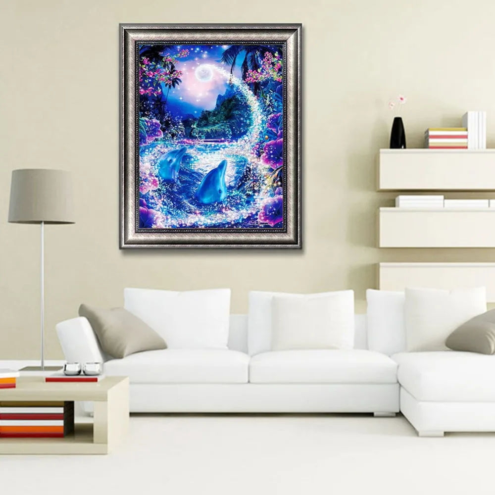 5D алмазная живопись сделай сам, полностью круглая вышивка крестиком с дельфином, морским ландшафтом, алмазная вышивка, мозаика с цветами, украшение Стразы