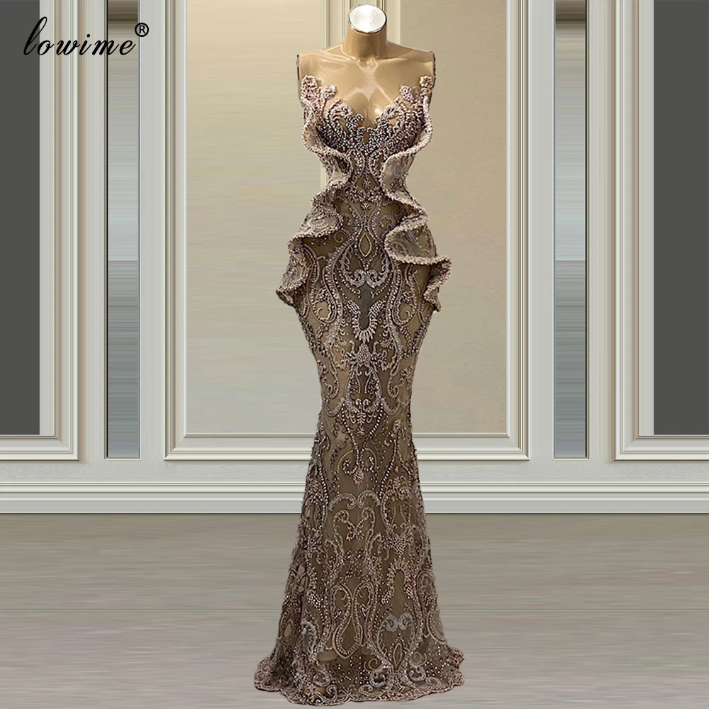 Винтажные платья для выпускного вечера Русалка Вечерние платья из жемчуга для женщин Вечерние Арабские кружевные платья с красной ковровой дорожкой для бега Свадебная вечевечерние