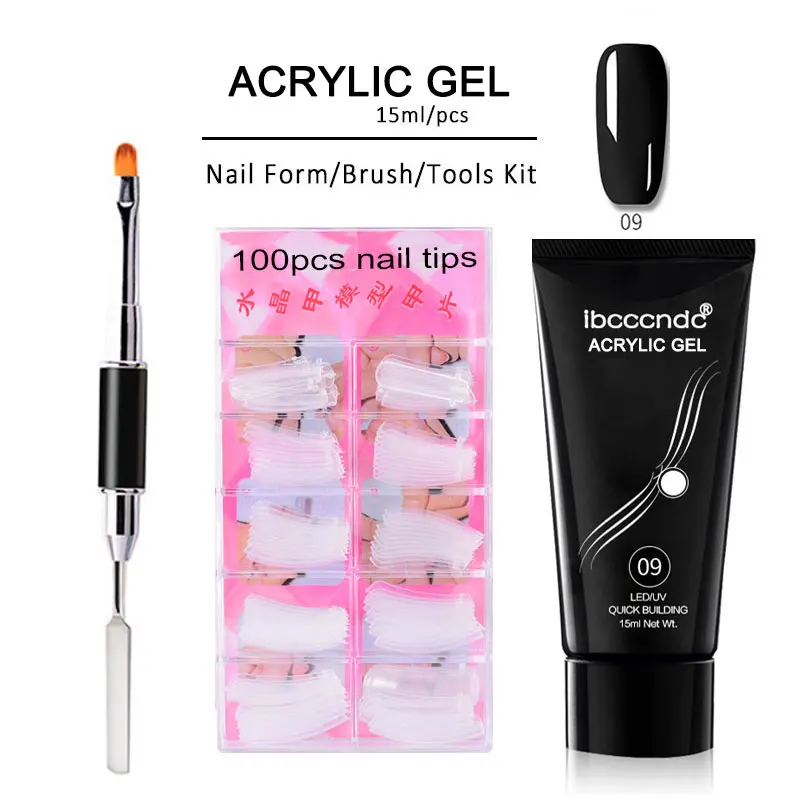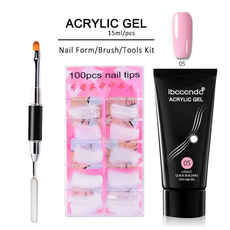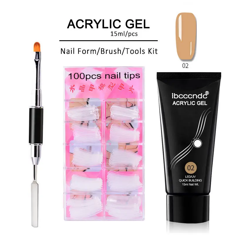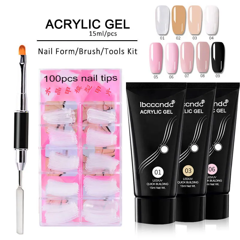 Набор гель-лаков для наращивания ногтей 3 шт.компл., кисть для ногтей, натуральный твердый желеобразный акриловый полимерный гель с типсами для ногтей и двойной головкой