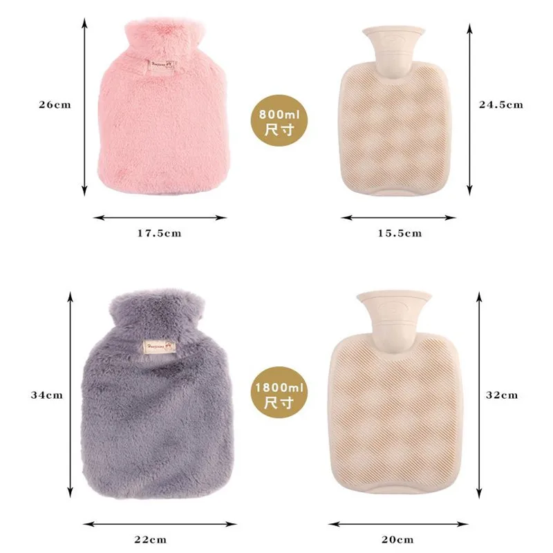 1 шт. Портативный плюшевые ПВХ горячей воды мешок 8001800 мл зимние теплые герметичная многоразовая грелка для рук Мини-грелка сумки