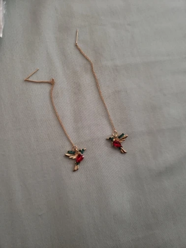 Длинные висячие серьги-цепочки с кристаллами в виде маленькой птицы...
