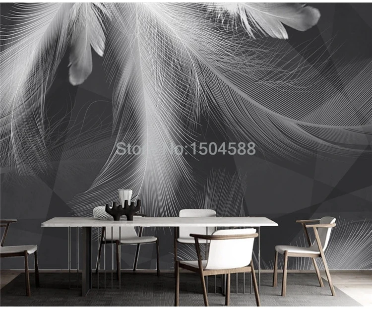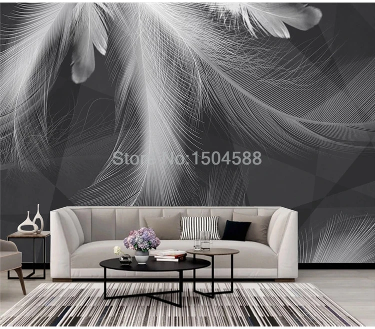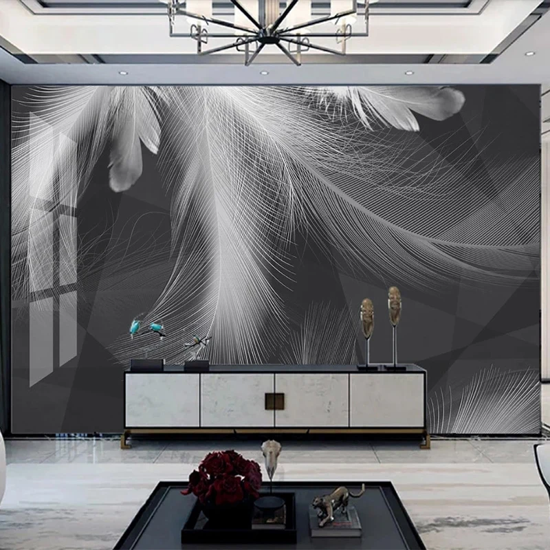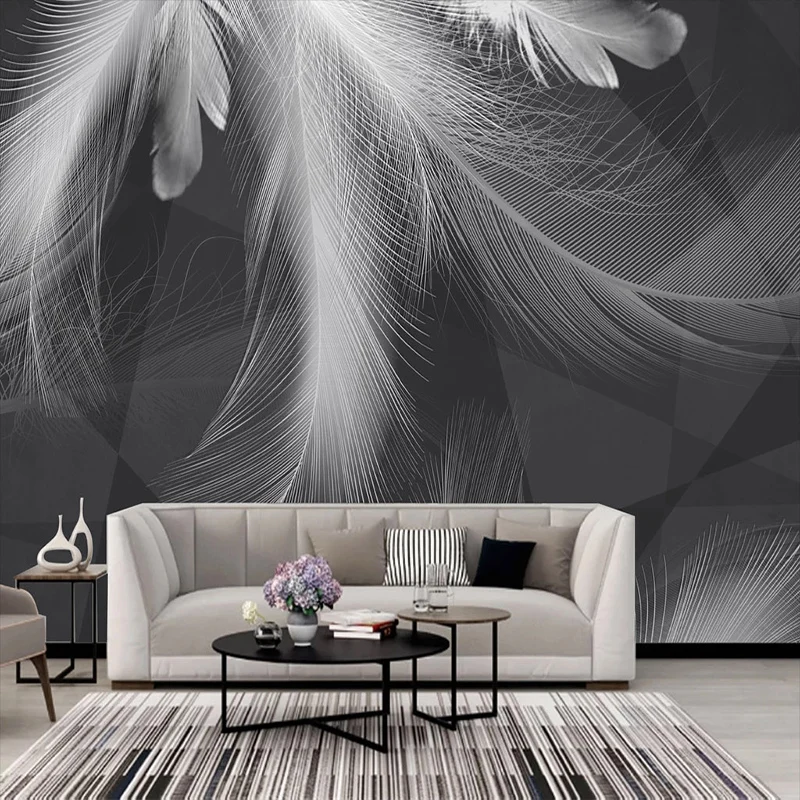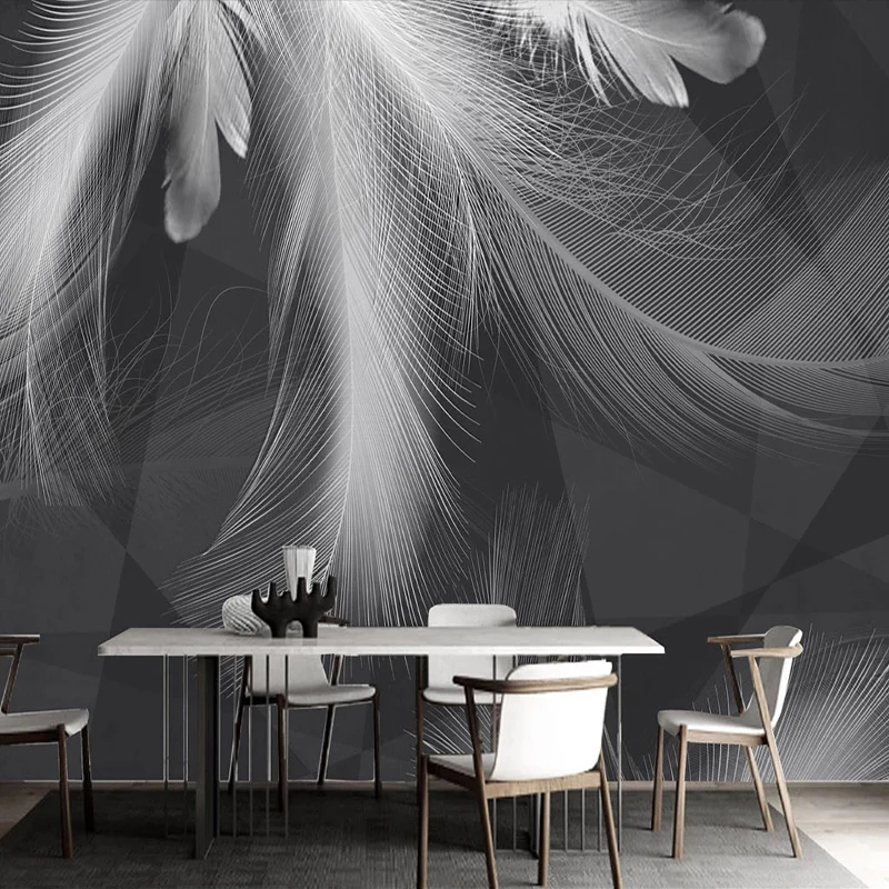 Настенные обои на заказ, Современные Простые красивые черно-белые серые перья, абстрактный художественный фон, декор для стен