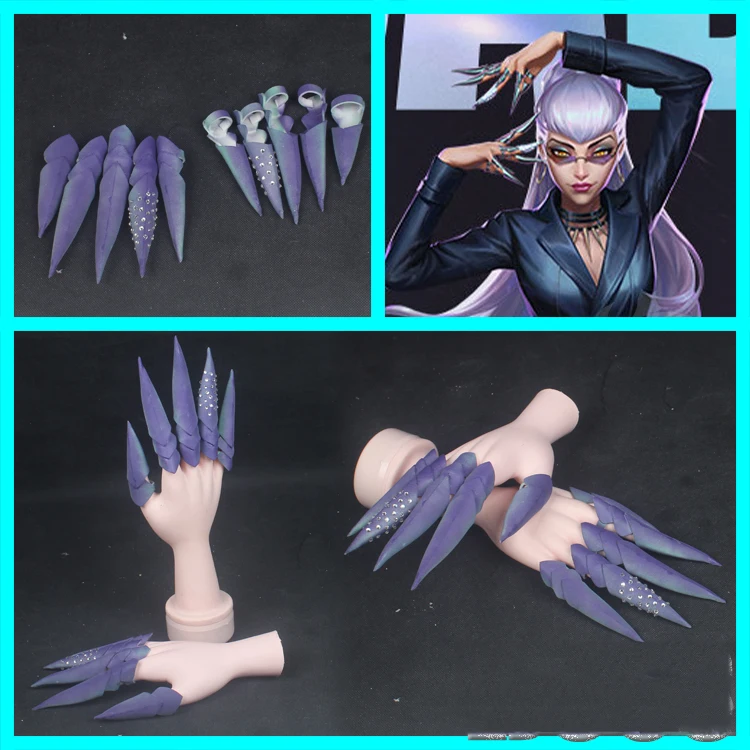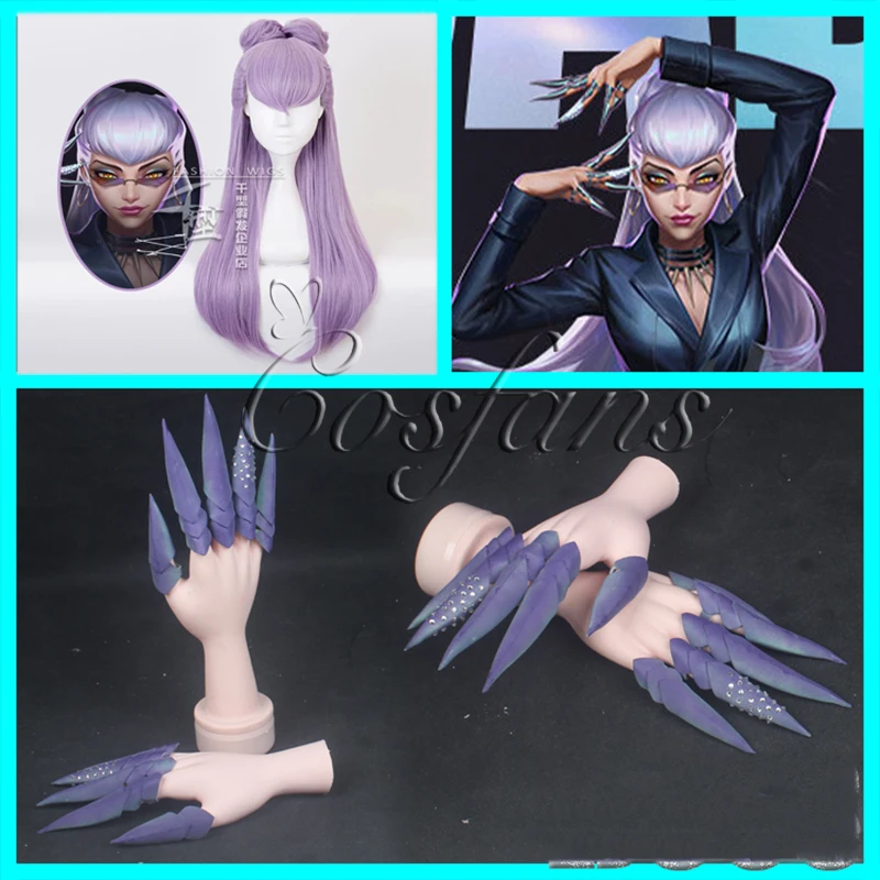 Парики для косплея KDA Baddest Evelynn, фиолетовые искусственные волосы с булочками для косплея LOL KDA, лапы из ЭВА, реквизит для косплея