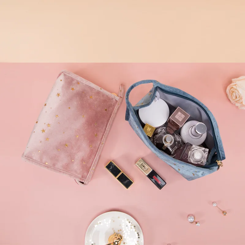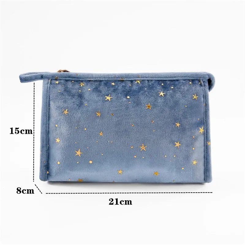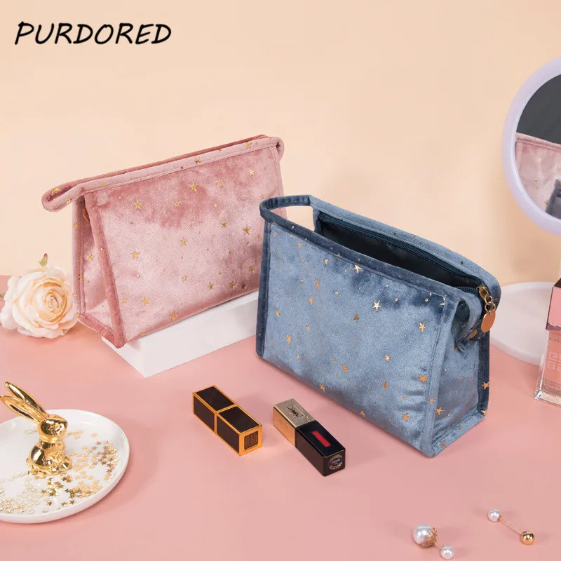 Женская сумочка для косметики PURDORED, мягкая бархатная сумочка с золотой звездой на молнии, 1 шт., для путешествий, косметичка, красивый чехол