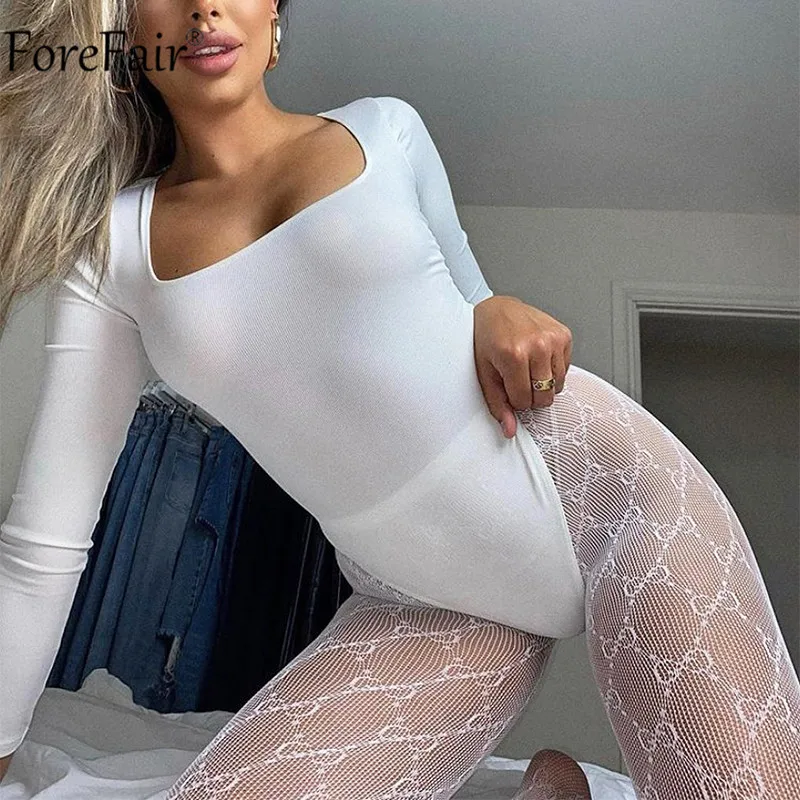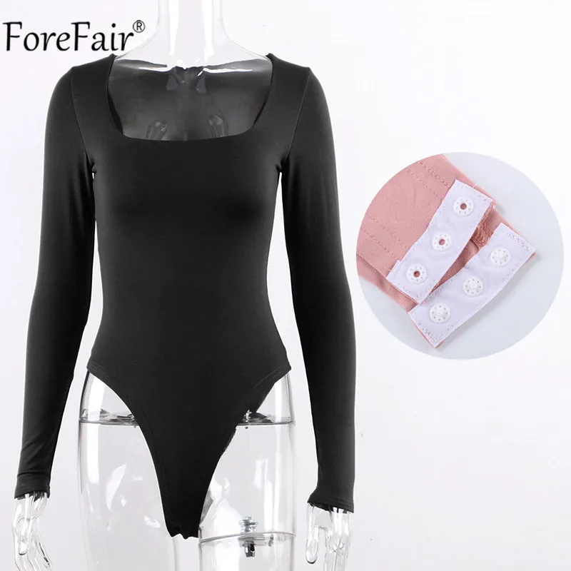 Forefair 2021, женское сексуальное боди с длинным рукавом, Черный Повседневный боди с квадратным вырезом, базовое белое осенне-зимнее вечернее боди цвета хаки