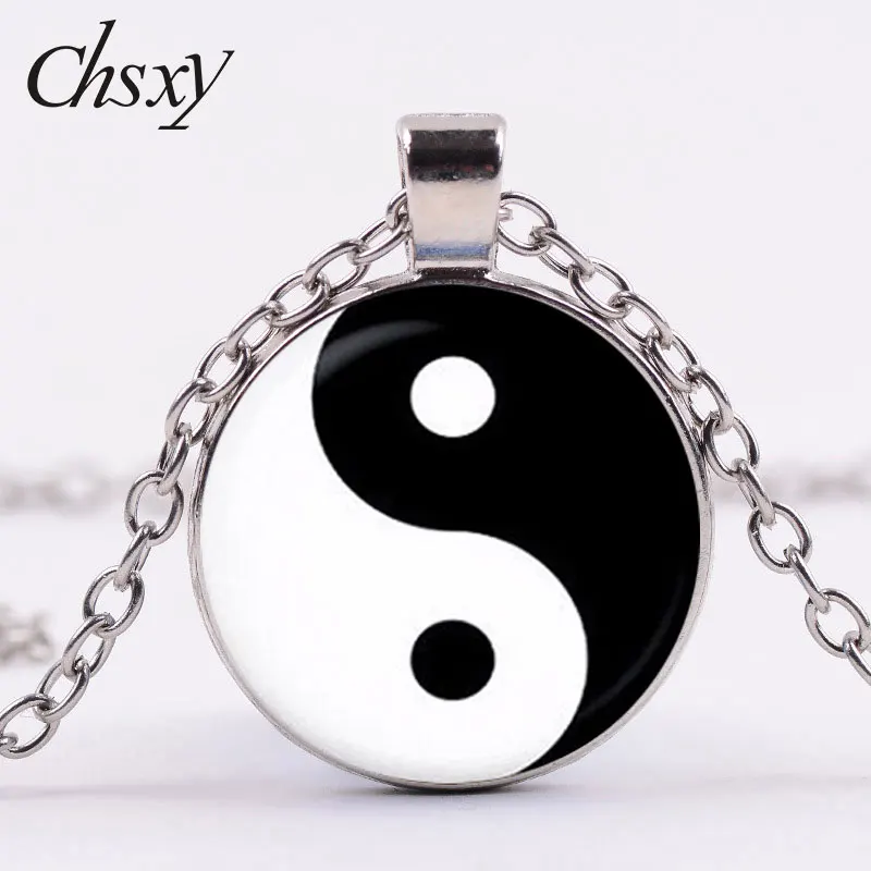 CHSXY китайский даосизм Tai Ji Yin Yang ожерелье с рисунком фото стекло кабошон кулон ожерелья для друзей мужчины ювелирные изделия подарки
