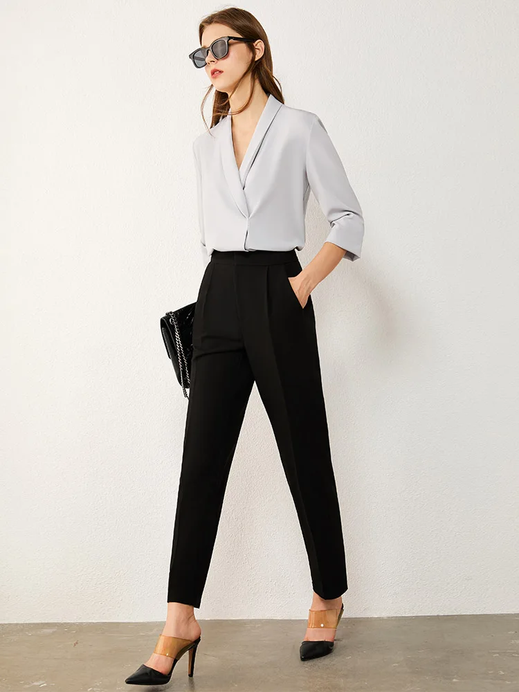 Брюки женские плиссированные прямые до щиколотки, весна-осень, 12030407