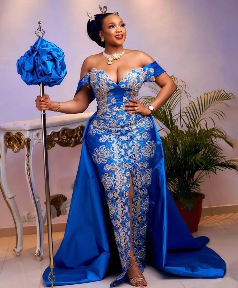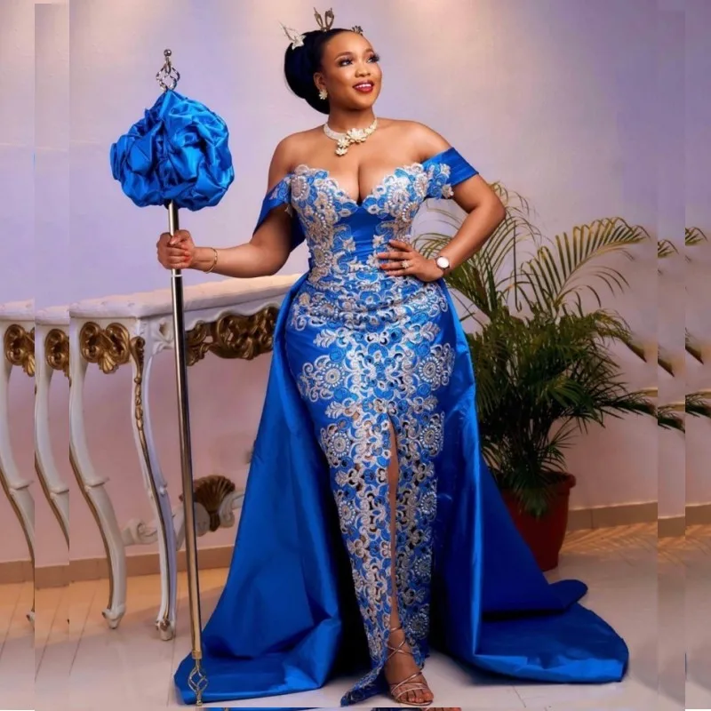 Aso Ebi Русалка Вечерние платья синего цвета с открытыми плечами юбка платье для выпускного вечера размера плюс, женские вечерние платья спереди и длинное Разделение платье партии