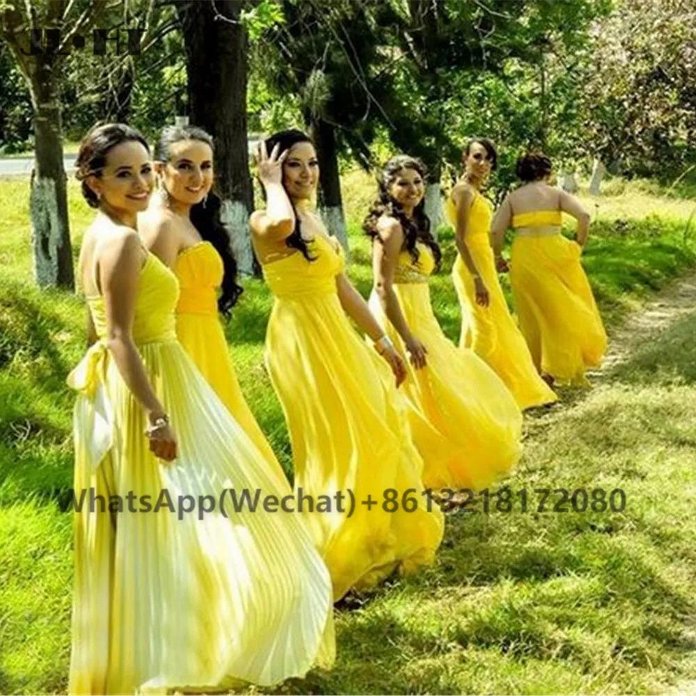 Африканское 2021 желтые платья подружек невесты длинное складки вырез сердечком шифоновое Черное женское платье для подружки невесты на свадьбу