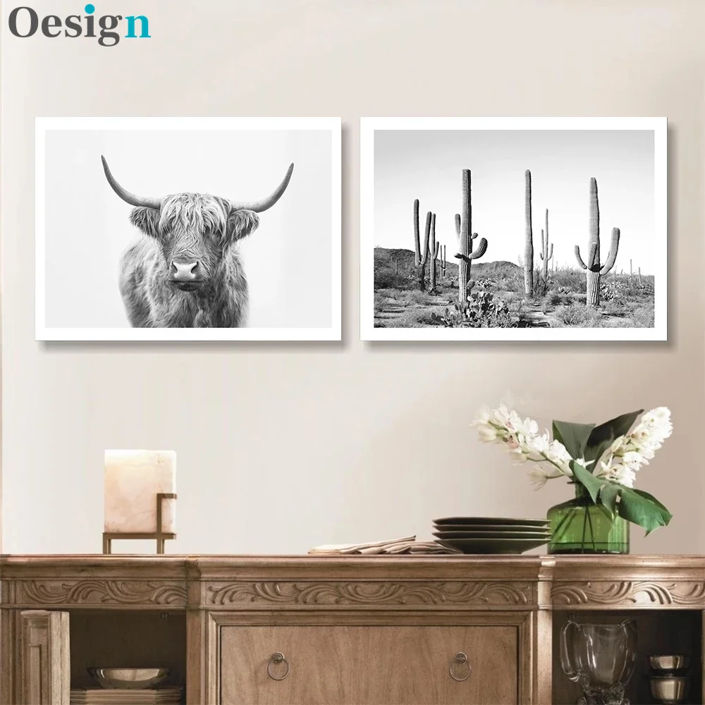 Картина на холсте с изображением животных, настенные художественные постеры и принты Highland Bull, настенные картины с изображением кактуса и земли для гостиной, украшение для дома