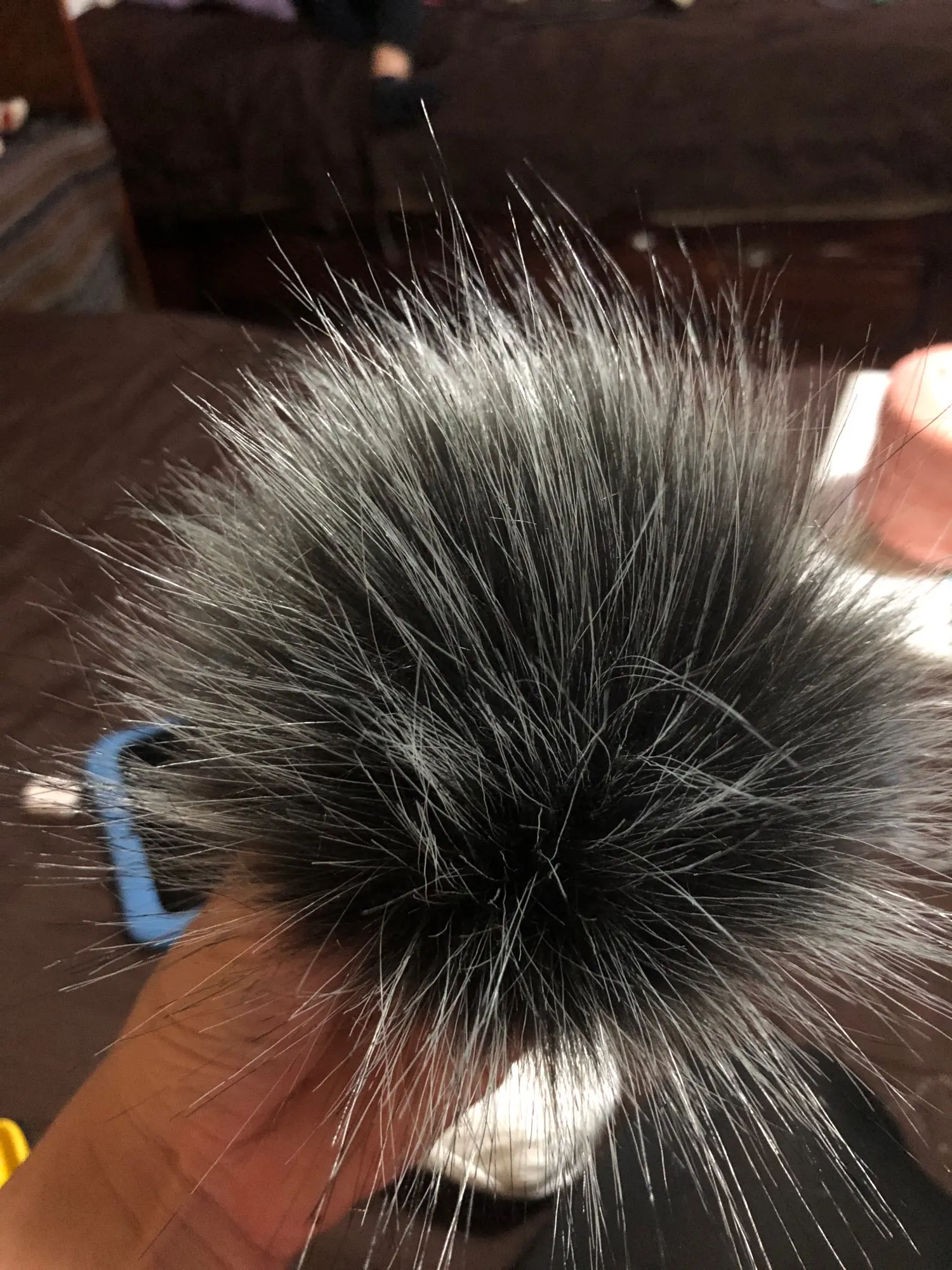 Это очень хорошо, вам просто нужно немного вытащить его, когда вы вытаскиваете его из упаковки, и теперь он очень пушистый. Отсутствует только пробка, которая пришита к шляпе, но это не большая проблема