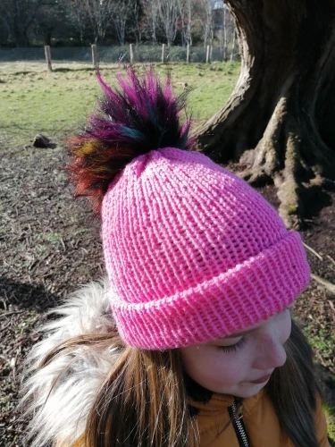 Шапка с помпоном из искусственного меха лисы, 10-12 см