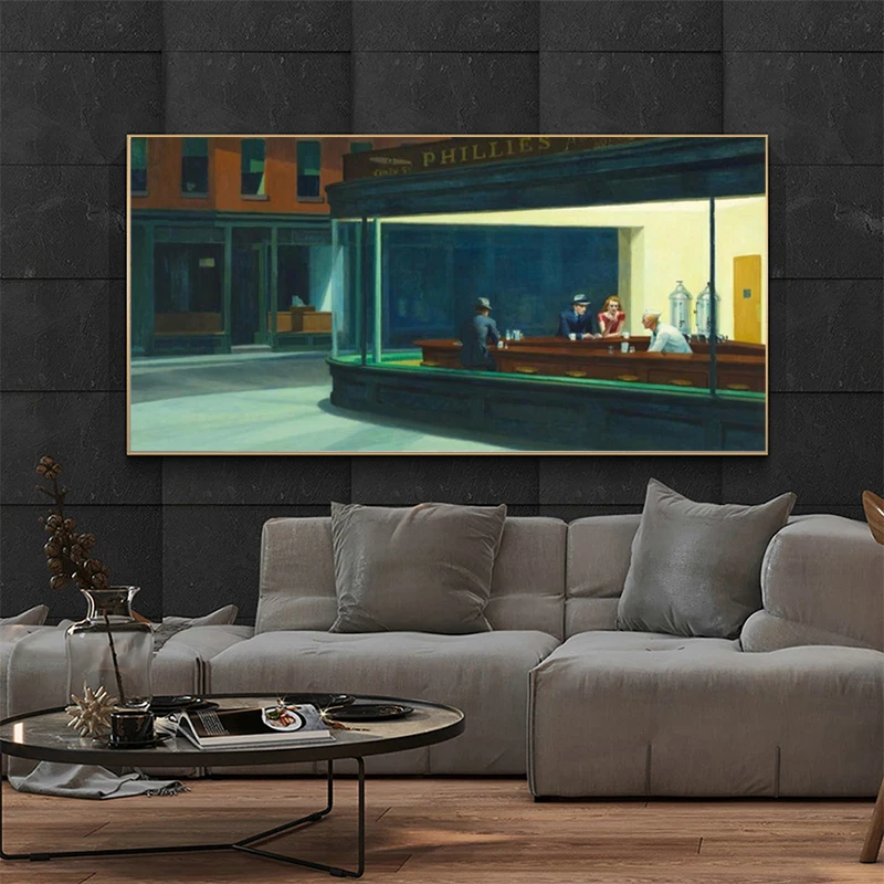Картина на холсте Ночные ястребы Эдвард Хоппер, плакаты и принты, настенные картины для гостиной, Настенный декор