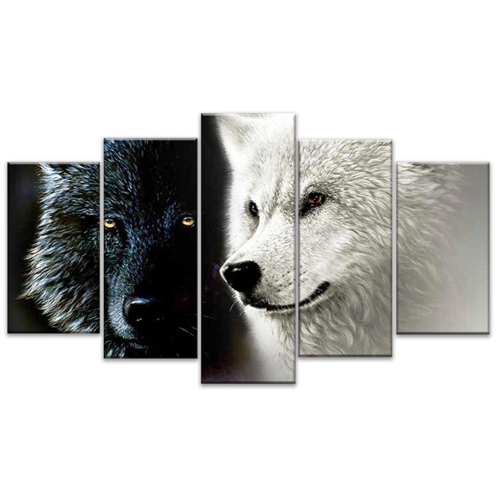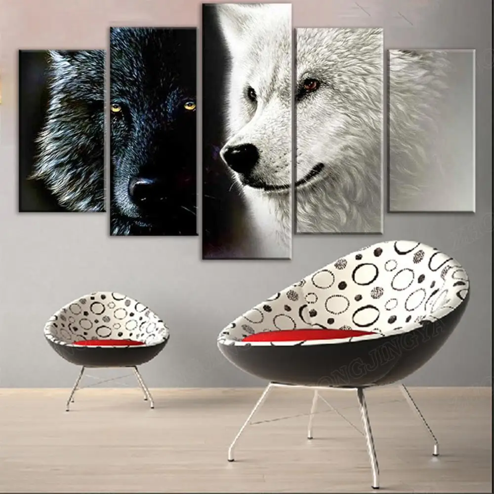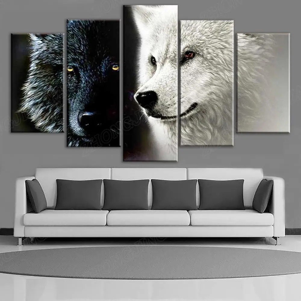 HD Печатный 5 шт. холст искусство абстрактный Черный Белый Волк пара Живопись стены картины для гостиной интерьера картины