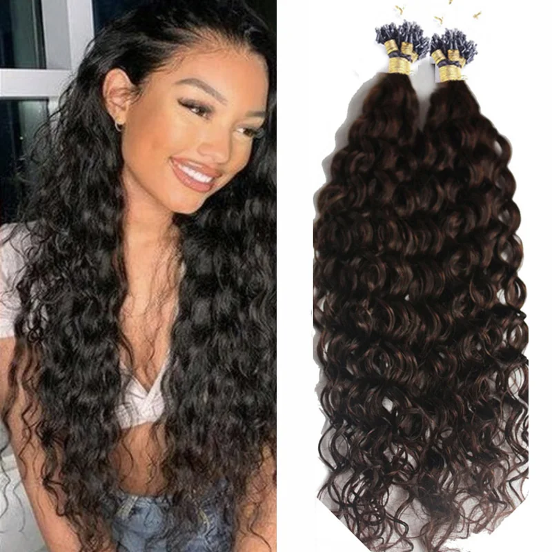 100 прядей микро петли кольцо волосы индийские Remy Свободные глубокие вьющиеся человеческие волосы 1 г/локон натуральный цвет/1 #/2 #/4 #