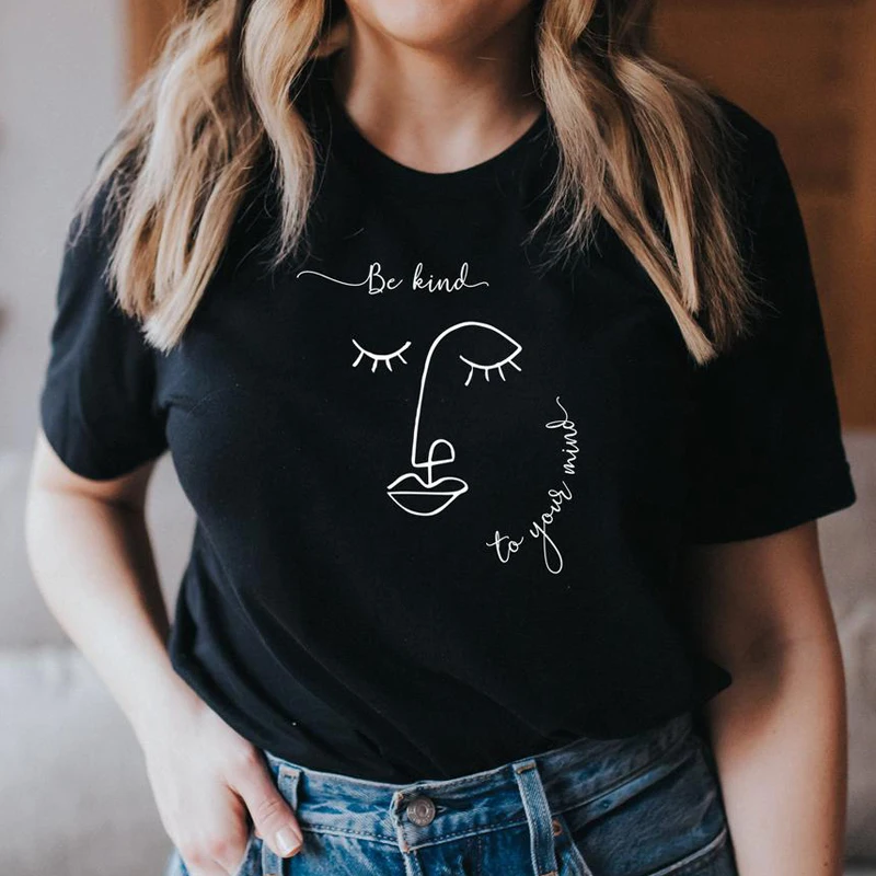 Футболка с абстрактным изображением лица и надписью будьте добры к мозгу, забавная женская футболка с умственным здоровьем, художественный Топ, футболка